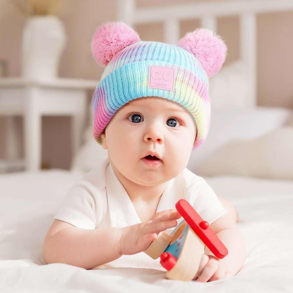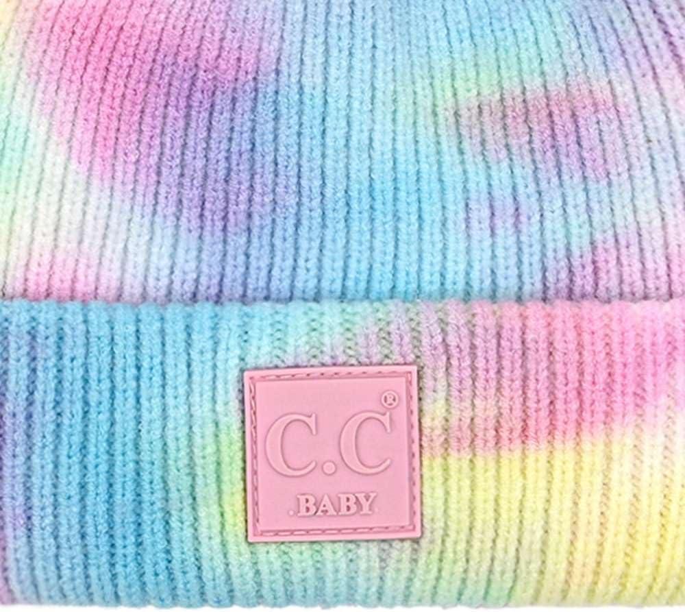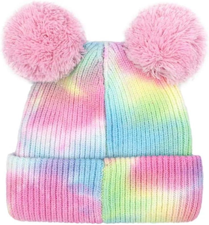 imageCC Kids Babies Soft Stretch Cable Knit Faux Fur Pom Pom Beanie HatTie Dye Cotton Candy