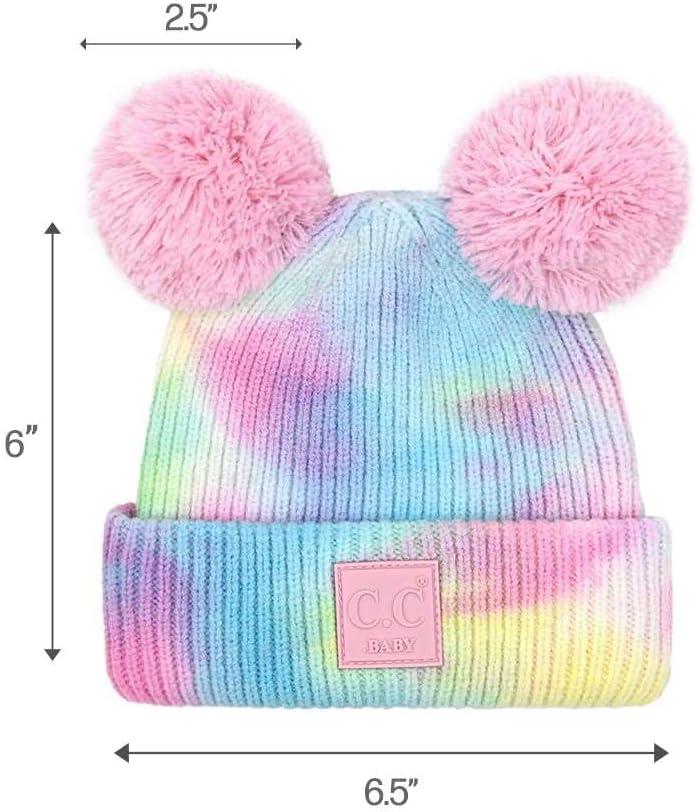 C.C Kids’ Babies’ Soft Stretch Cable Knit Faux Fur Pom Pom Beanie Hat(Tie Dye Cotton Candy)