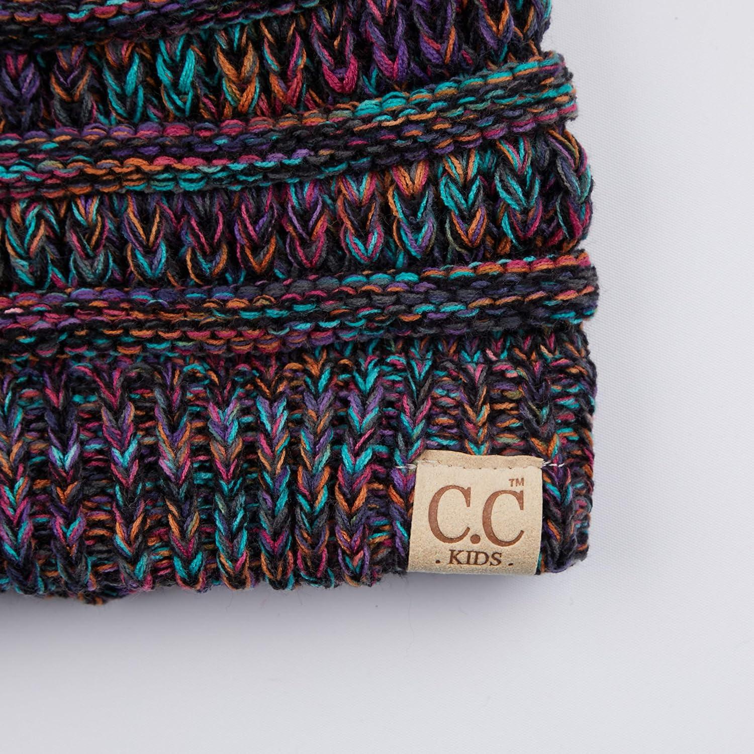 C.C Kids Beanie Ages 2-5 Warm Chunky Stretchy Knit Slouch Beanie Skull Kids Hat with Pom(Blackmulti Mix)