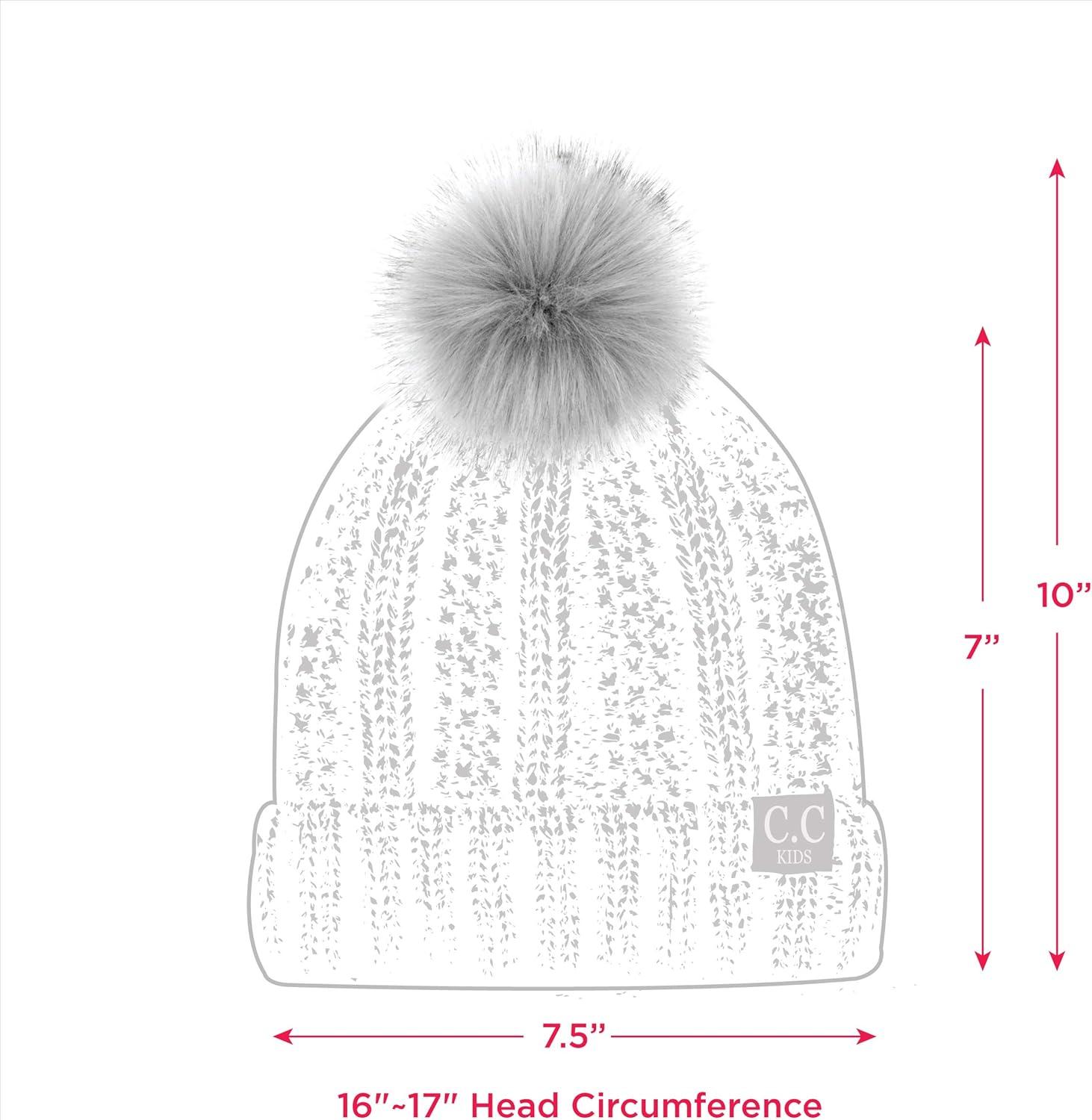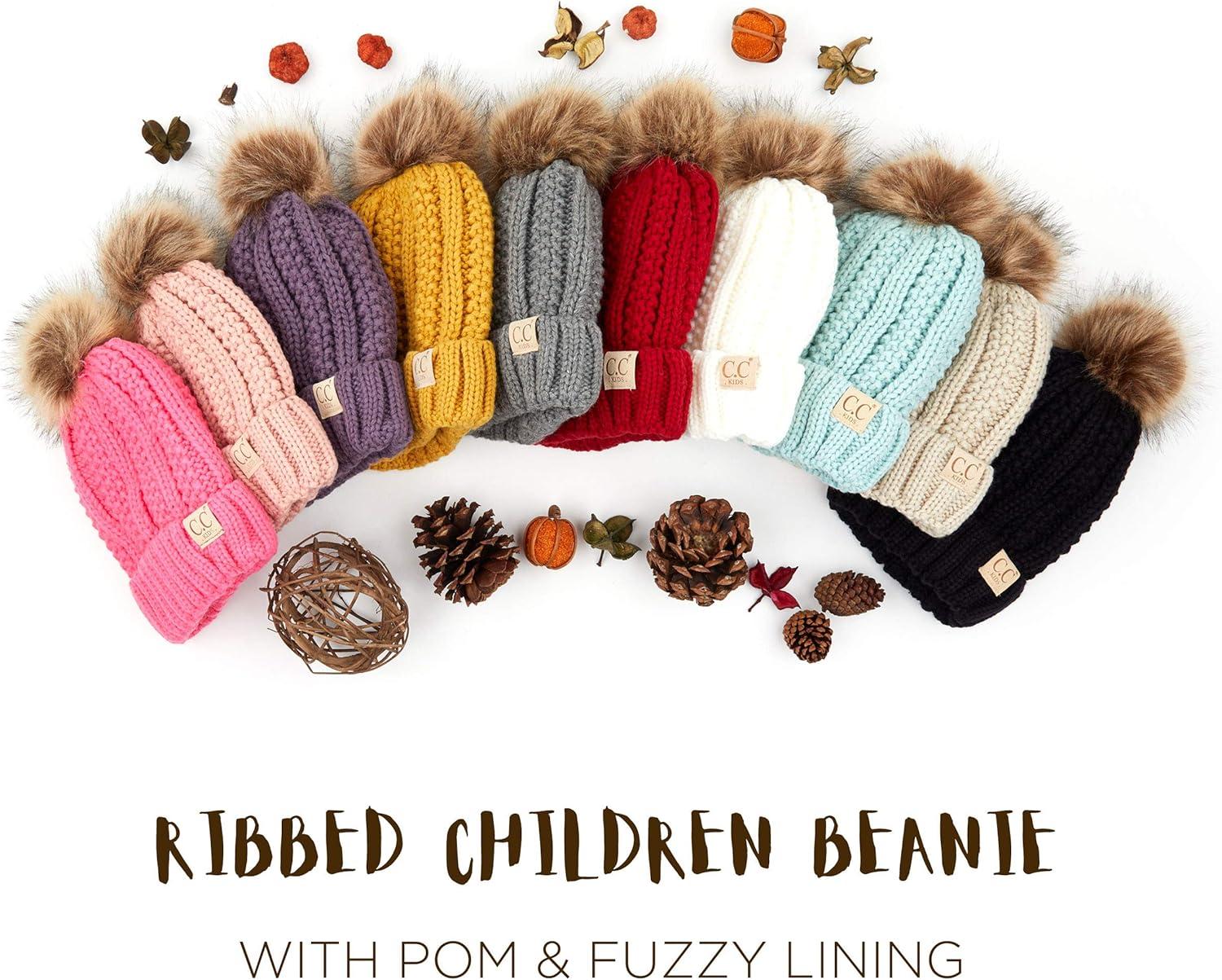 C.C Kids Beanie Ages 2-5 Warm Chunky Thick Stretchy Knit Slouch Beanie Skull Kids Hat with Pom(Purple)