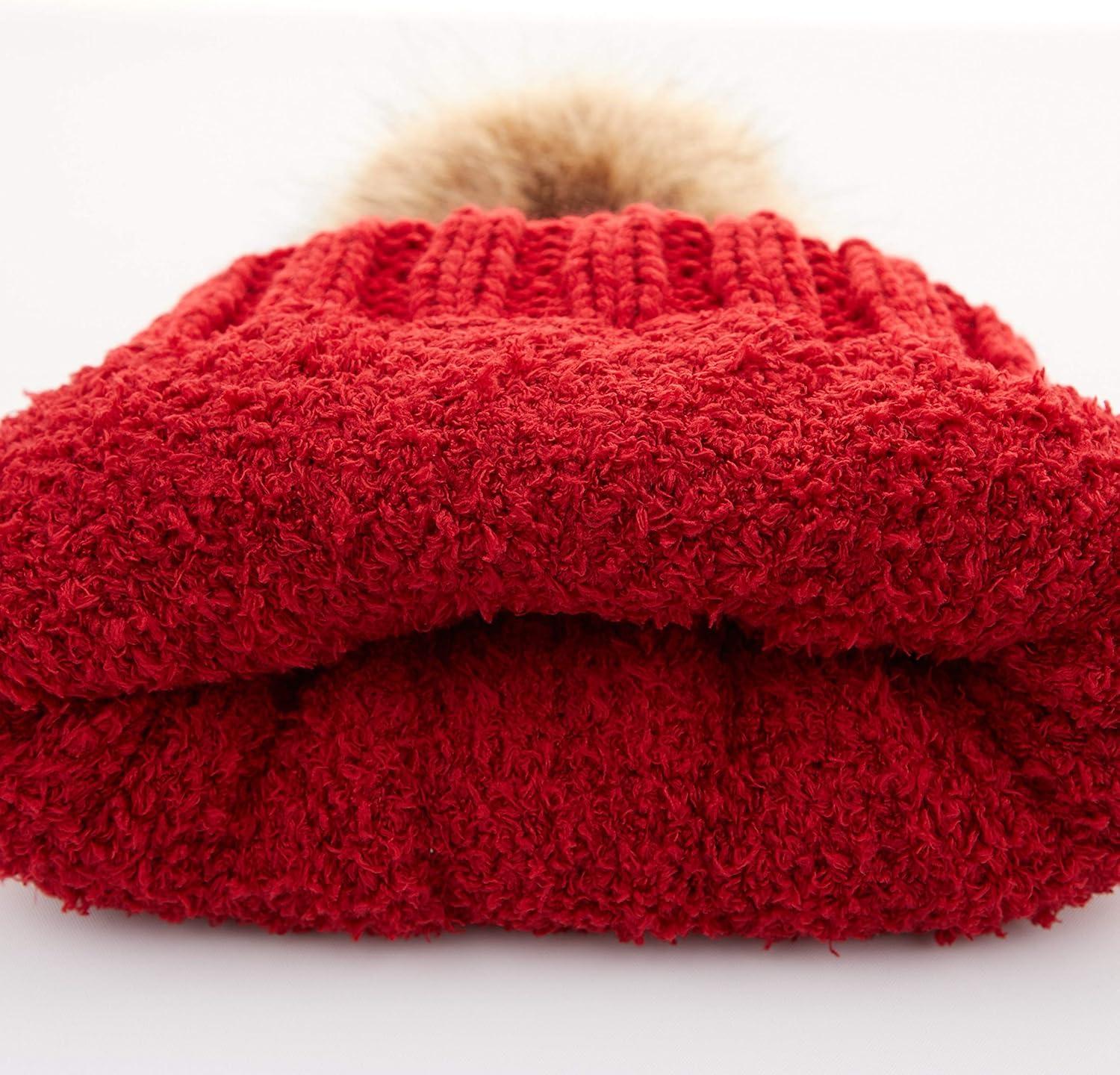 imageCC Kids Beanie Ages 25 Warm Chunky Thick Stretchy Knit Slouch Beanie Skull Kids Hat with PomRed