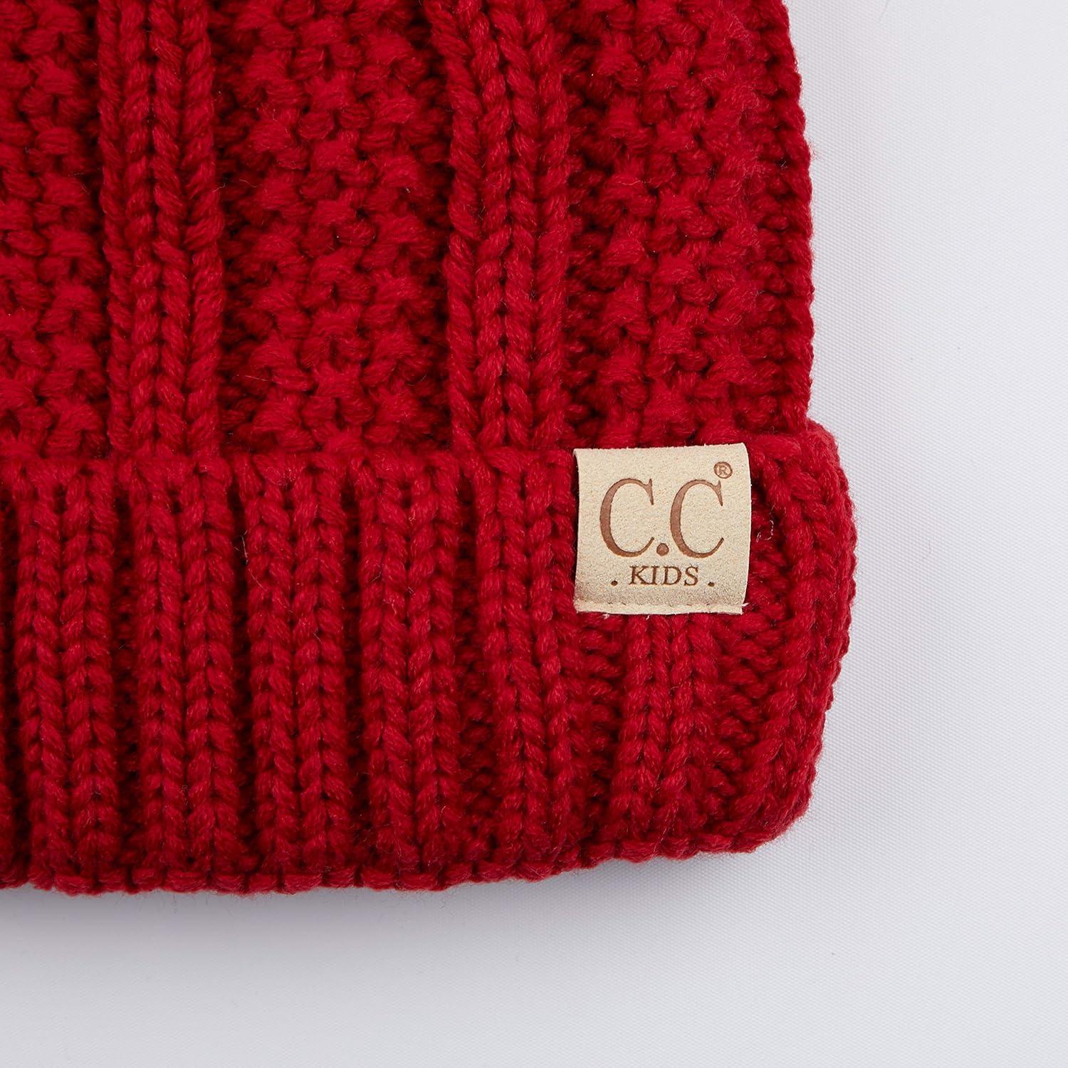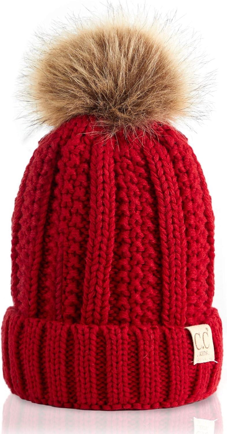 C.C Kids Beanie Ages 2-5 Warm Chunky Thick Stretchy Knit Slouch Beanie Skull Kids Hat with Pom(Red)