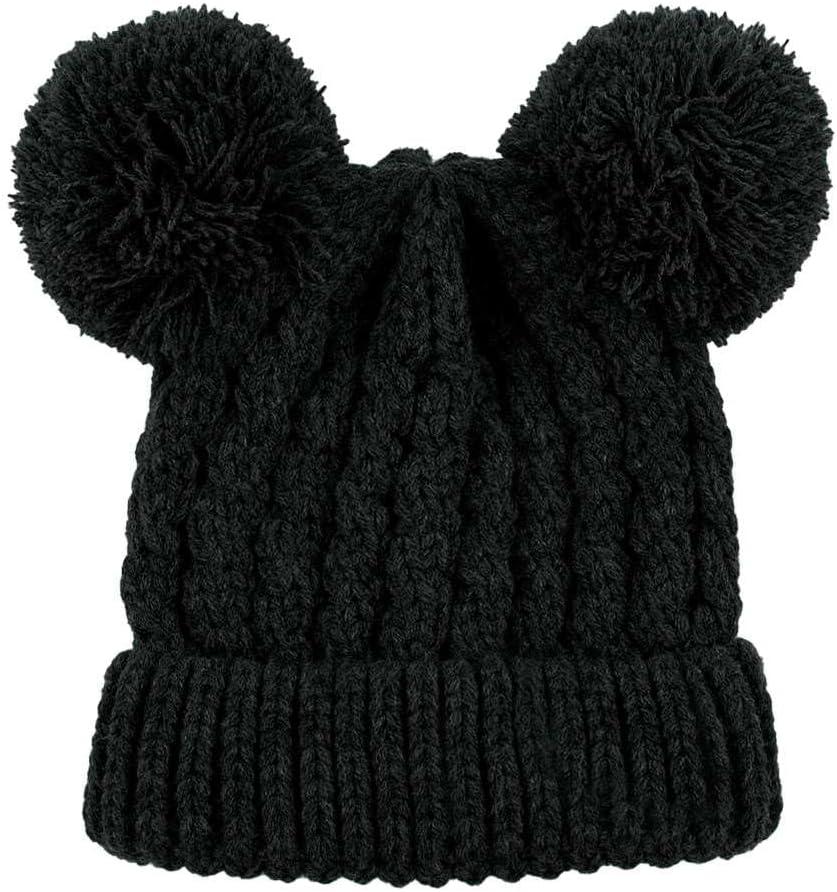 C.C Kids' Cable Knit Double Pom Beanie for Kids - Comfortable Soft Warm Children Youth Skully Hat with Pom(Yarn Pom Black)
