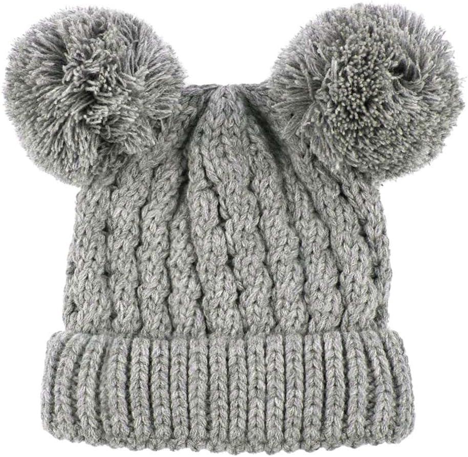 C.C Kids' Cable Knit Double Pom Beanie for Kids - Comfortable Soft Warm Children Youth Skully Hat with Pom(Yarn Pom Light Melange Gray)