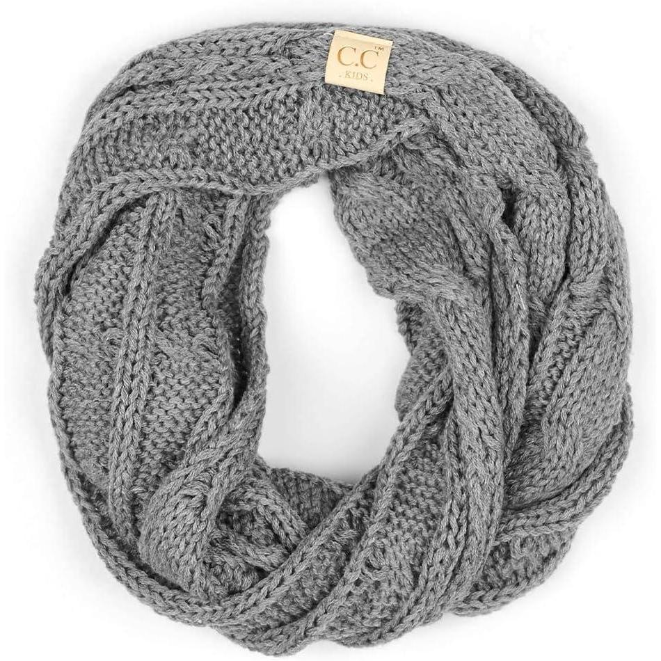 C.C Kids Cable Knit Infinity Scarf For Boys Girls - Comfortable Soft Warm Children Youth Knit Muffler(Lt.mel Grey)