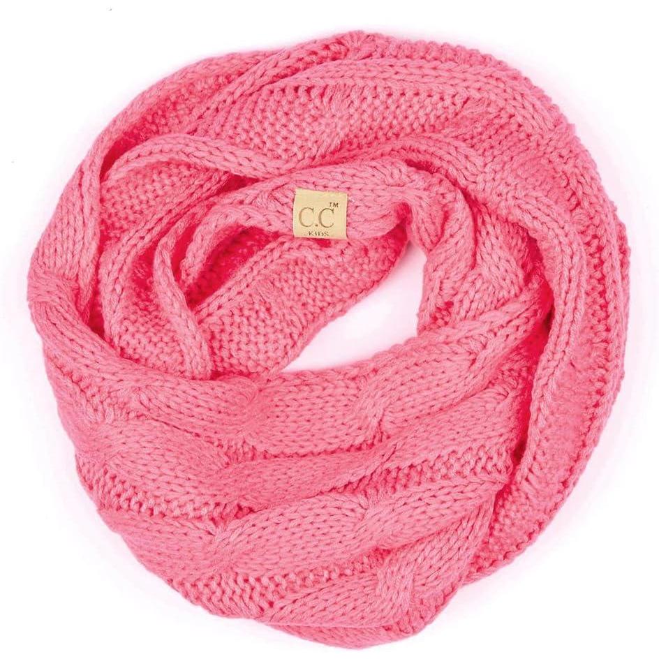C.C Kids Cable Knit Infinity Scarf For Boys Girls - Comfortable Soft Warm Children Youth Knit Muffler(New Candy Pink)