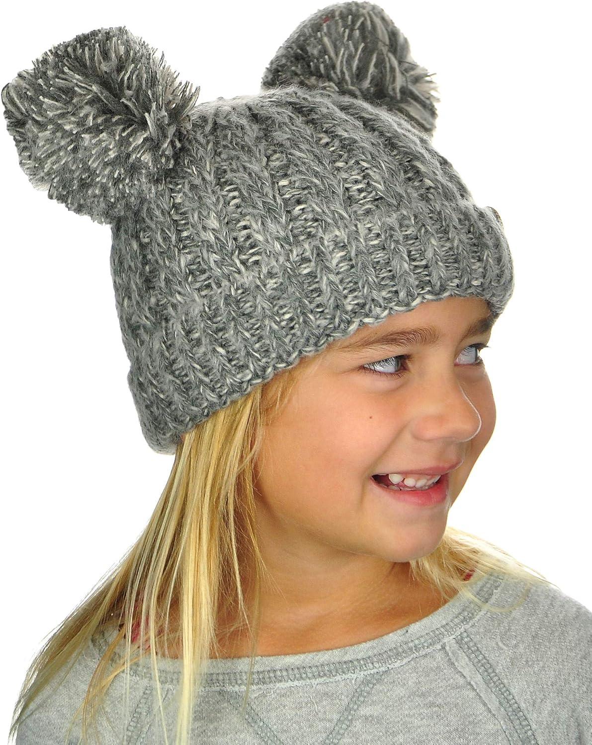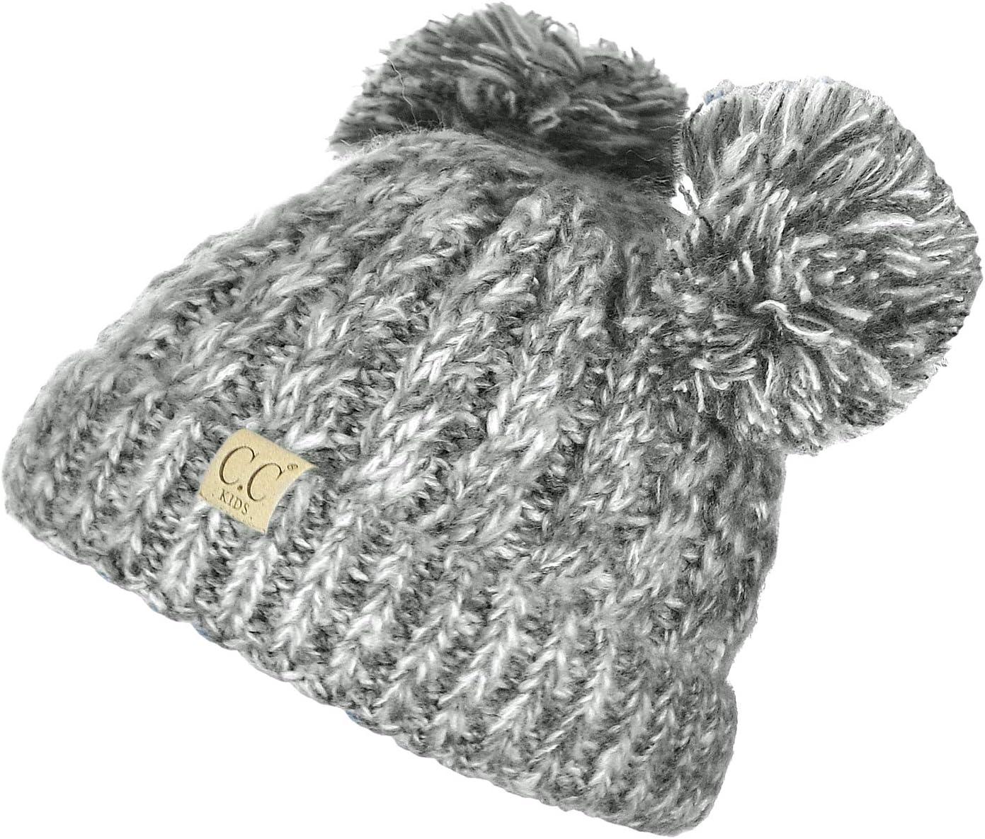 C.C Kids' Children's Cable Knit Double Ear Pom Cuffed Beanie Cap Hat(Two Tone Dark Grey)