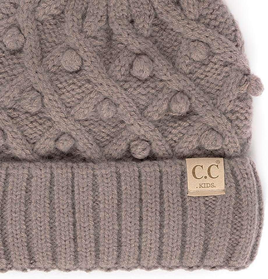 C.C Kids' Children's Cable Knit Faux Fuzzy Fur Pom Fleece Lined Cuff Beanie(Handmade Bobble City Gray)