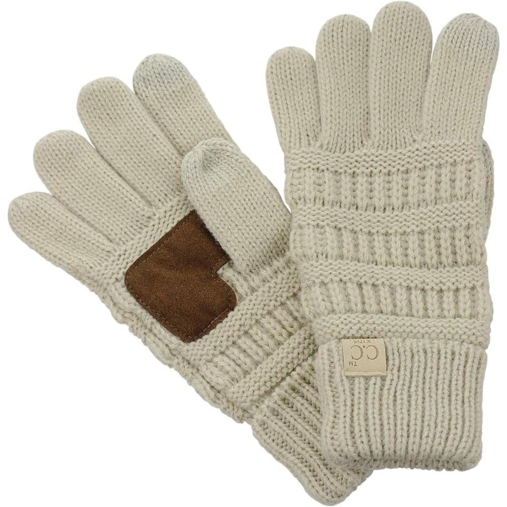 C.C. Kids' Children's Cable Knit Warm Anti-Slip Touchscreen Texting Gloves(Beige)
