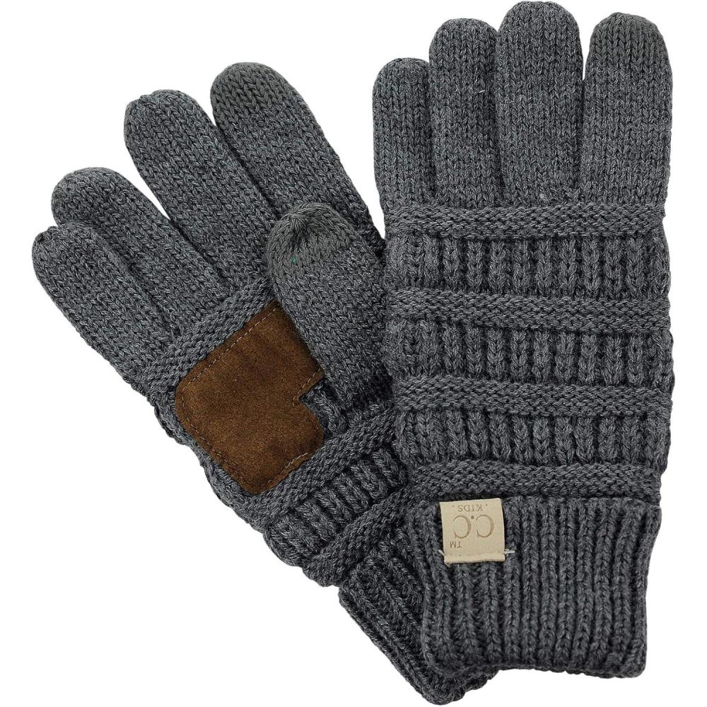 C.C. Kids' Children's Cable Knit Warm Anti-Slip Touchscreen Texting Gloves(Dark Melange Gray)