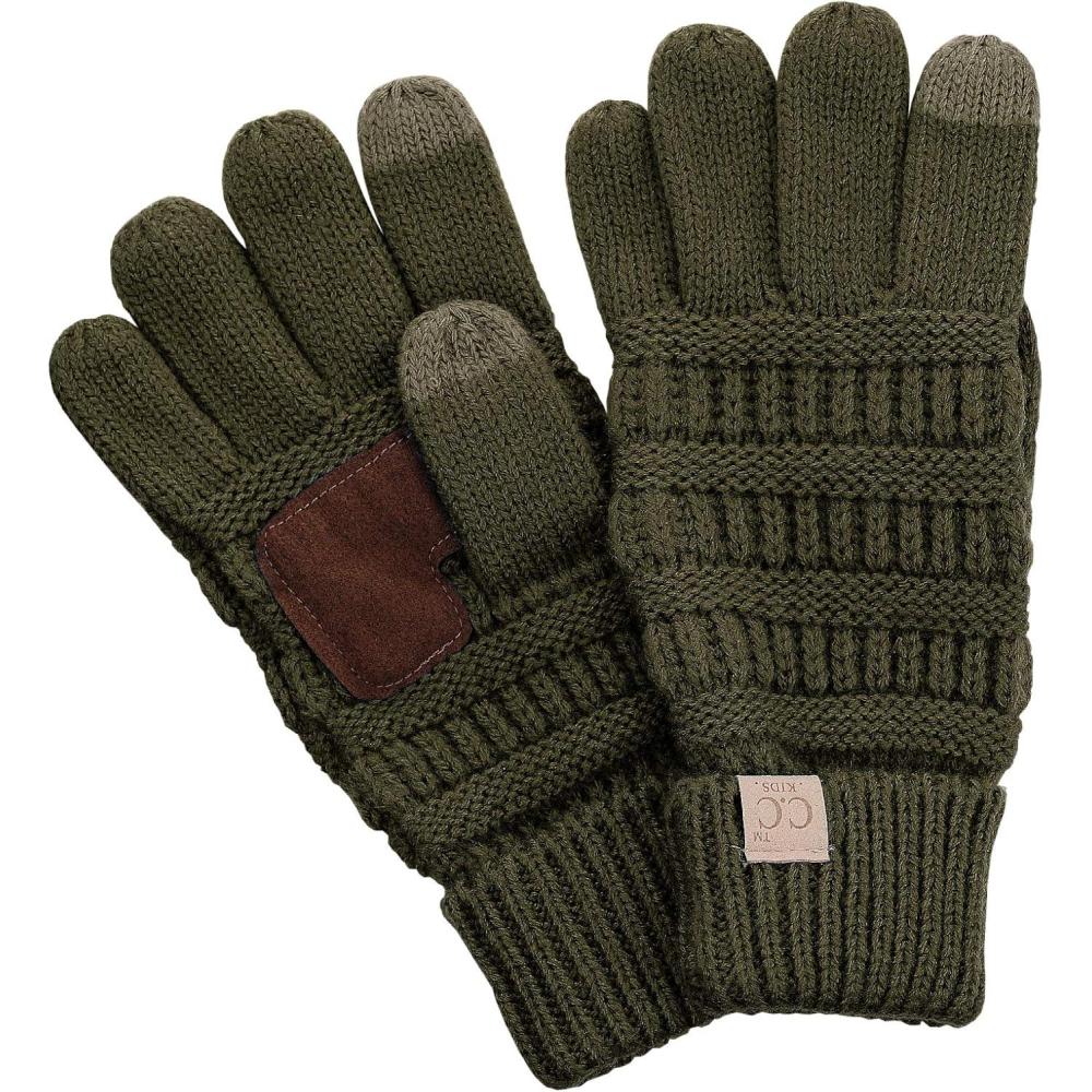 C.C. Kids' Children's Cable Knit Warm Anti-Slip Touchscreen Texting Gloves(Dark Olive)