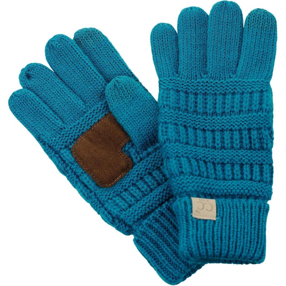 C.C. Kids' Children's Cable Knit Warm Anti-Slip Touchscreen Texting Gloves(Teal)