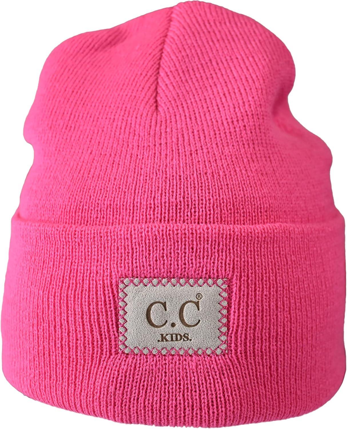 C.C Kids' Children's Winter Knit Plain Cuff Skull Cap Beanie Hat(Candy Pink)