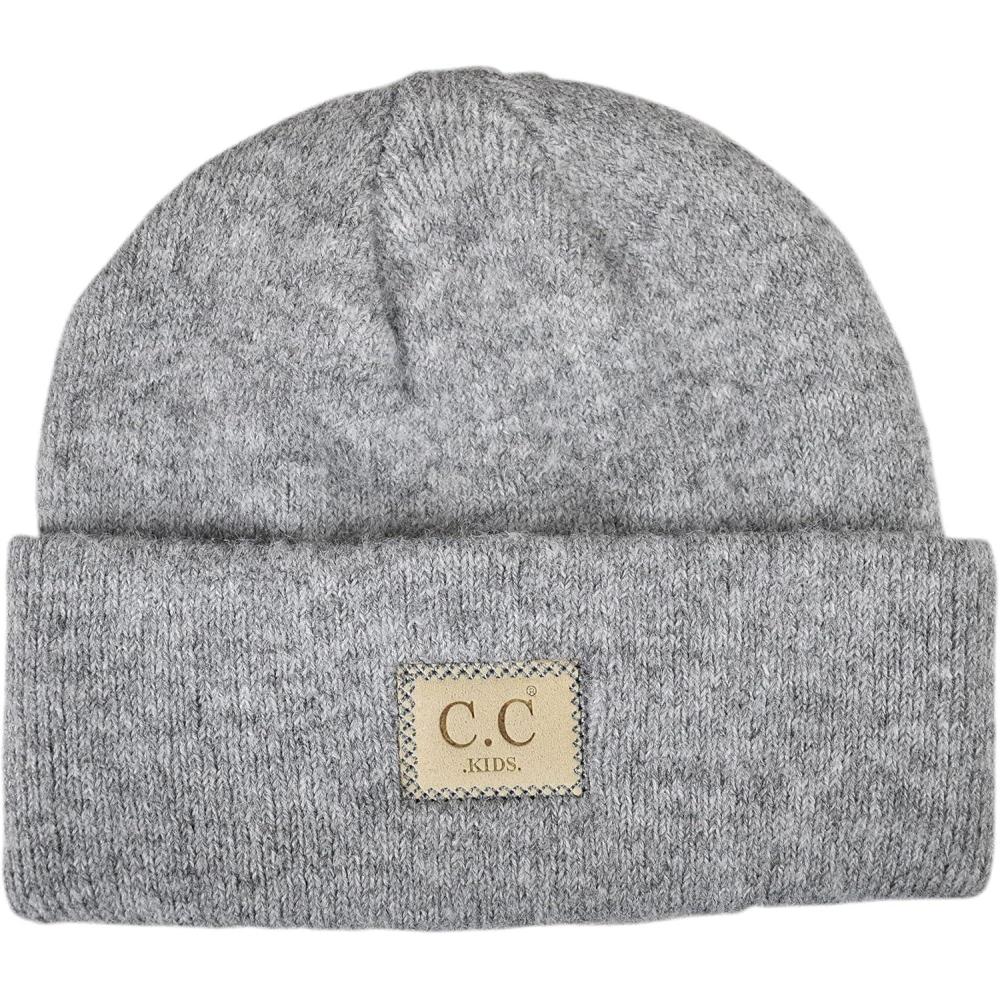 C.C Kids' Children's Winter Knit Plain Cuff Skull Cap Beanie Hat(Heather Classic Light Melange Gray)