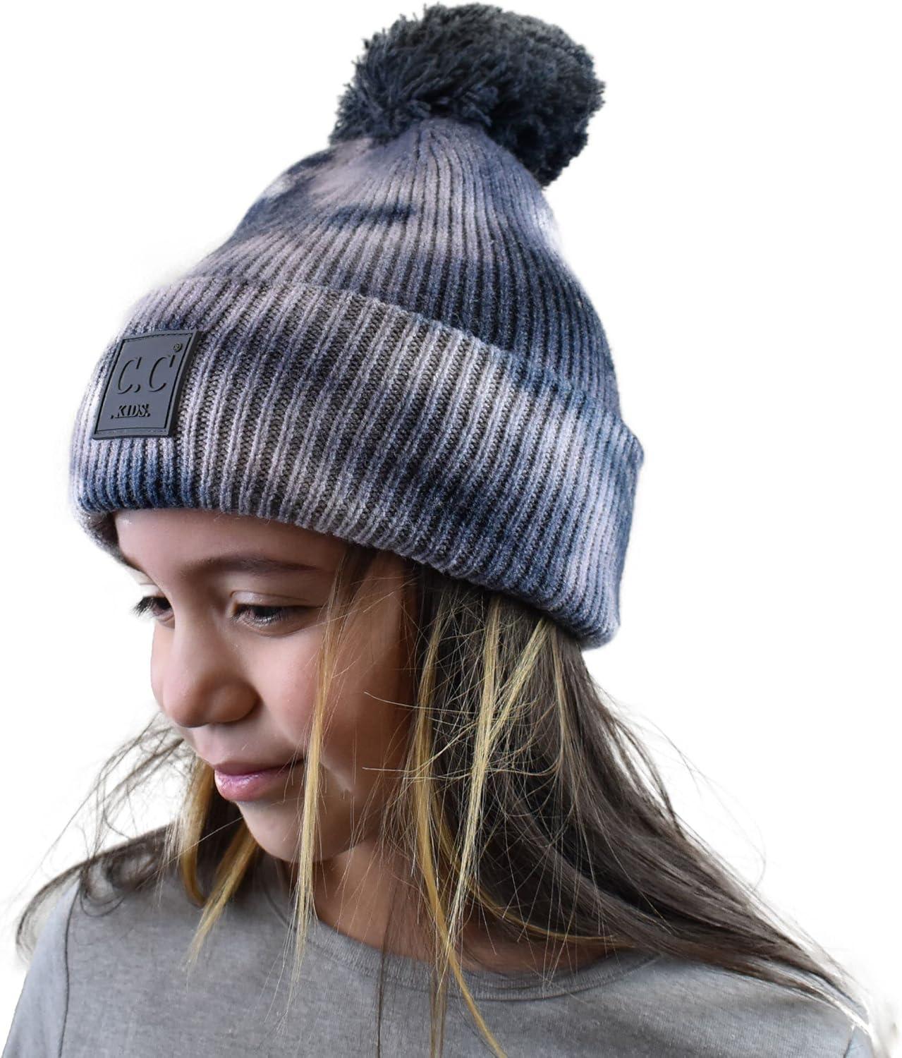 C.C Kids’ Children’s Winter Thick Knit Tie Dye Pom Cuff Beanie(Dark Gray/Light Gray)
