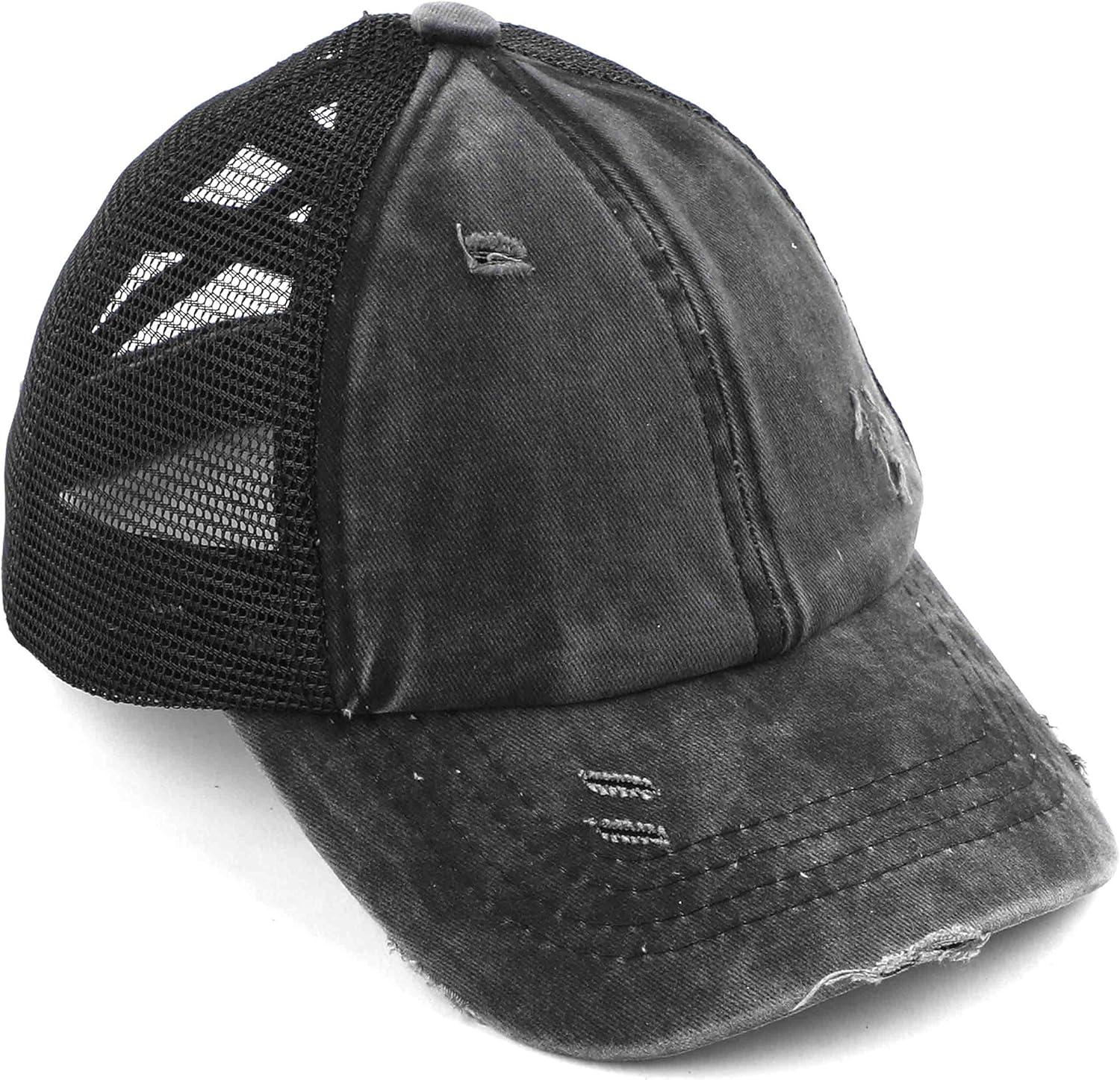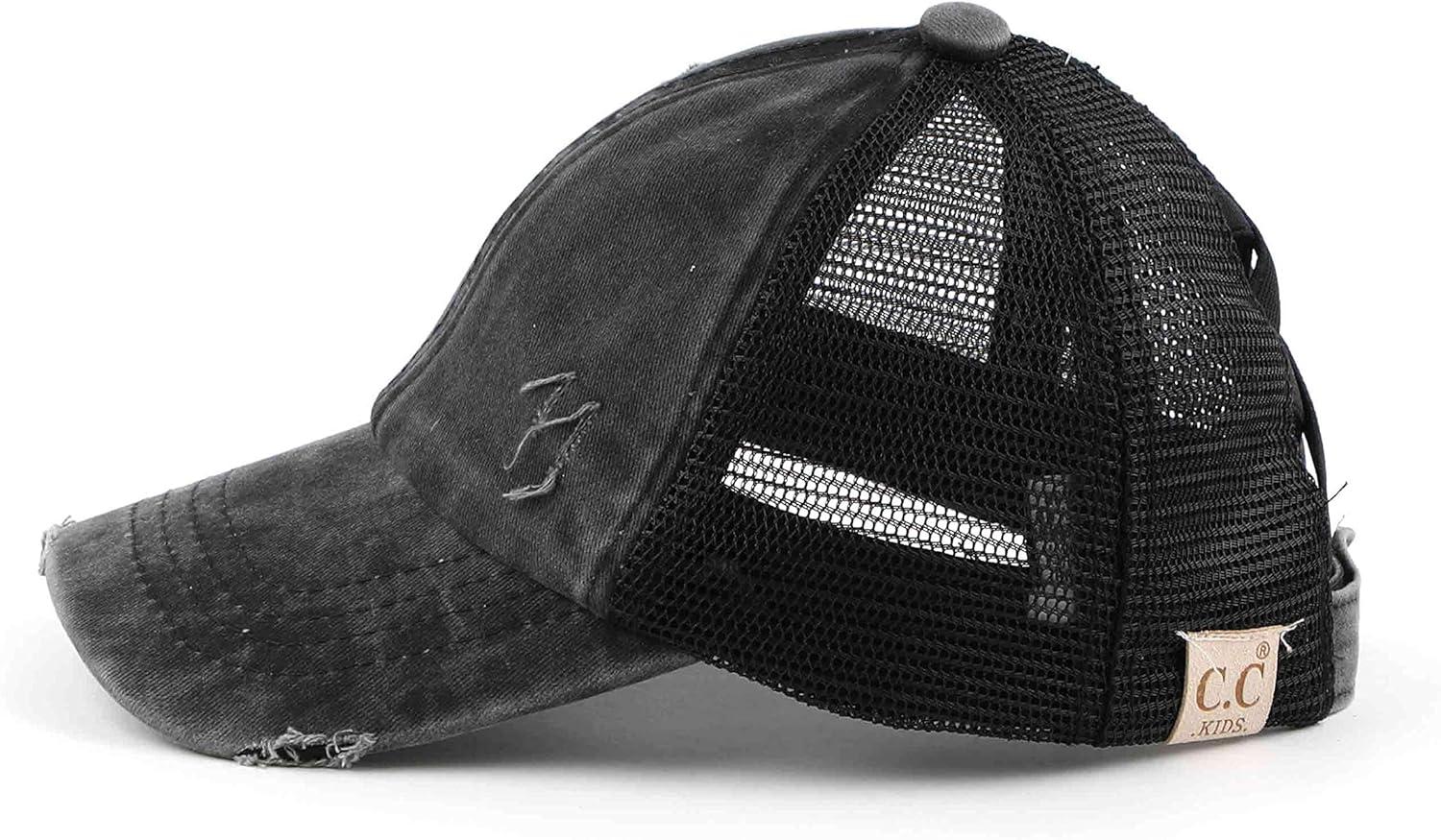 C.C Kids Criss-Cross Elastic Band Ponytail Caps Messy Buns Trucker Plain Baseball Cap (KIDS-BT-780)(Black)