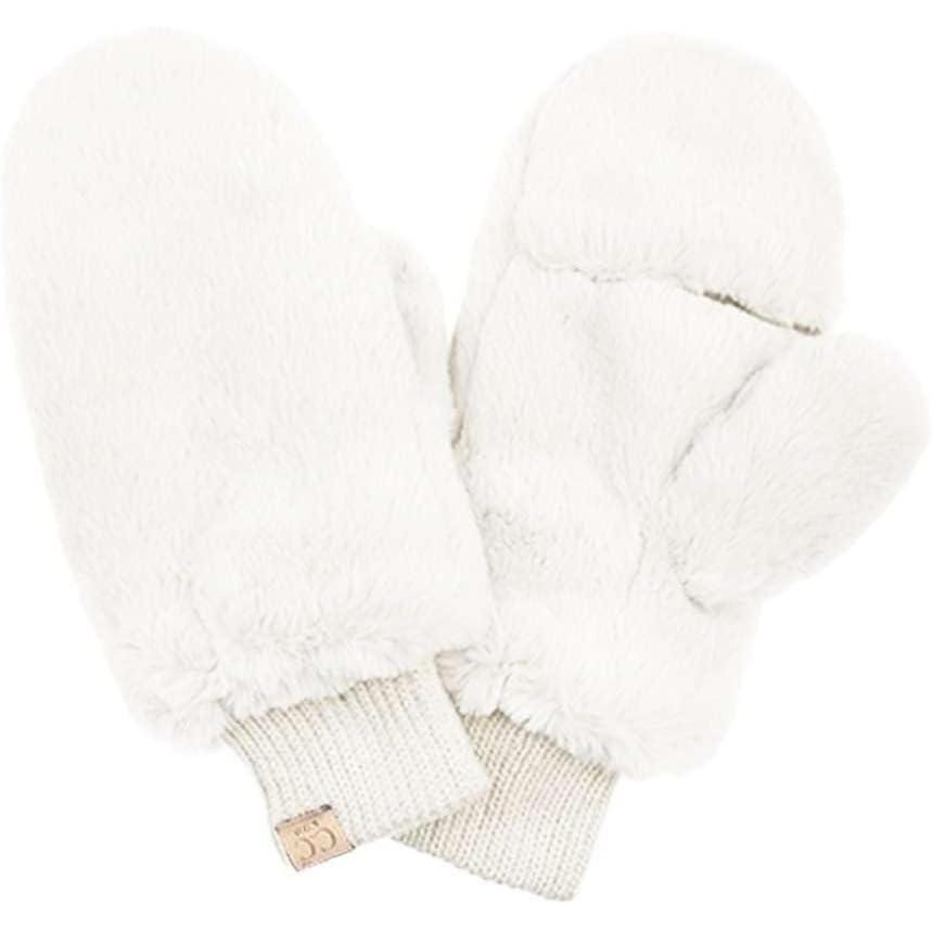 C.C Kids Faux Fur Sherpa Lined Convertible Mittens(Ivory)