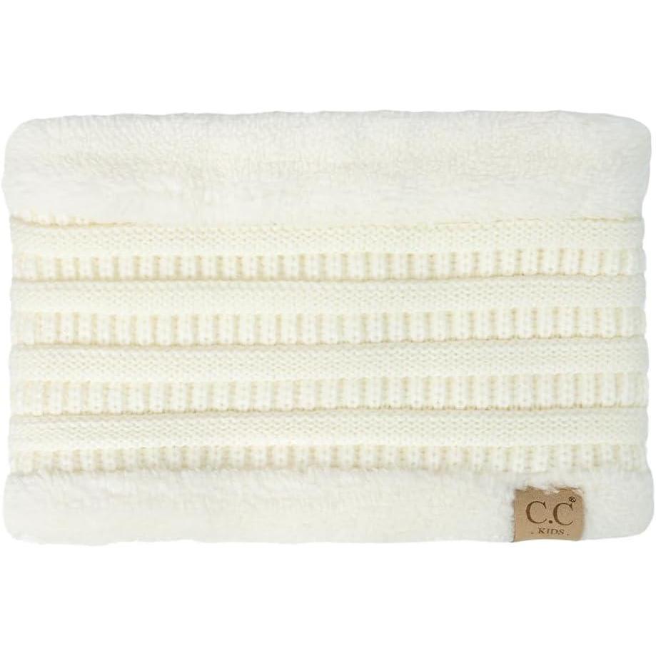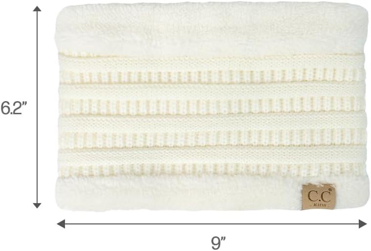 C.C Kids Ribbed Neck Warmer For Boys Girls - Comfortable Soft Warm Children Youth Knit Neck Gaiter with Fuzzy Lining(Ivory)