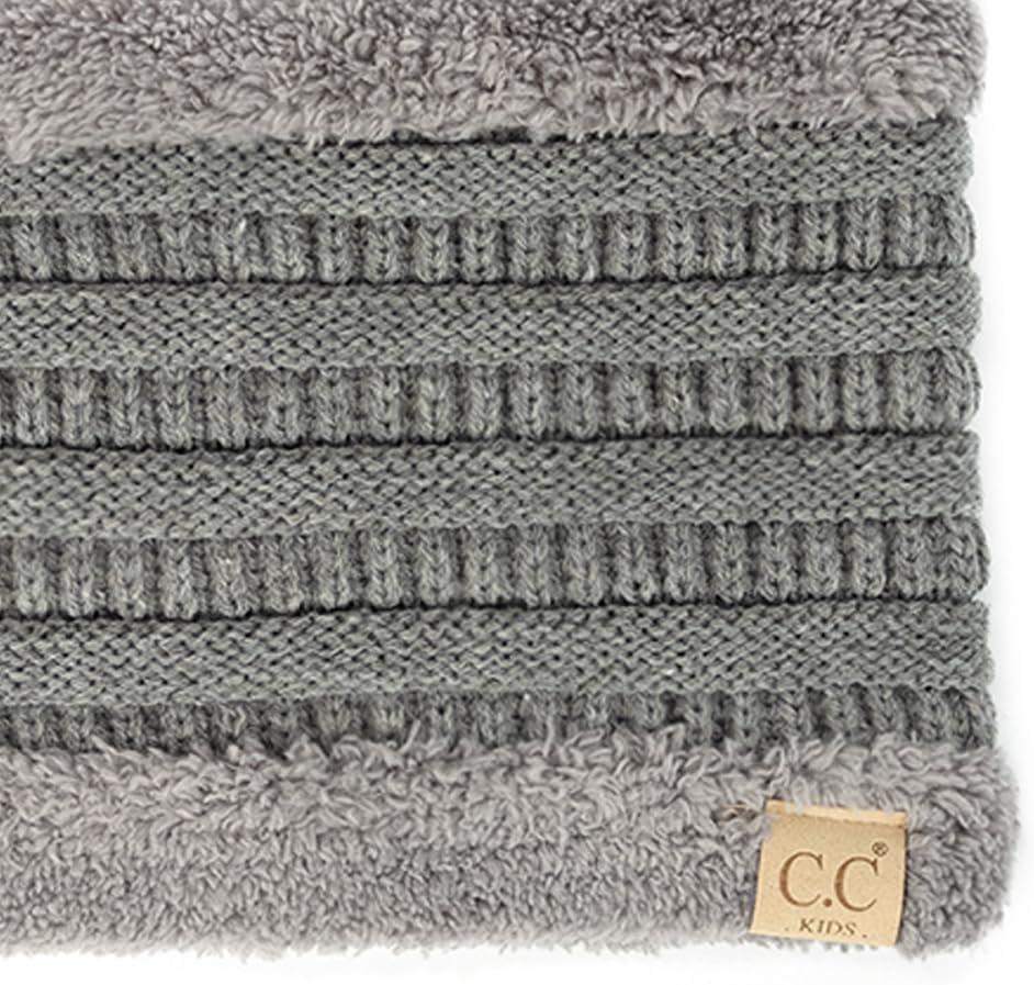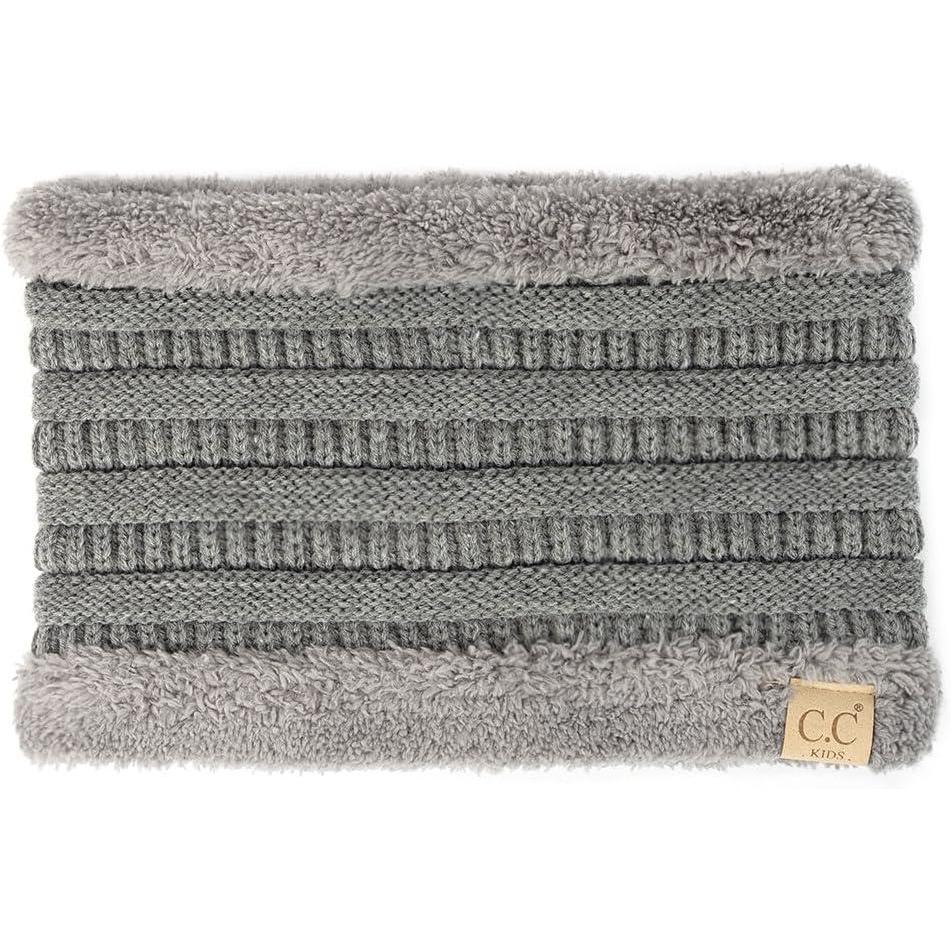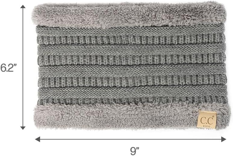 C.C Kids Ribbed Neck Warmer For Boys Girls - Comfortable Soft Warm Children Youth Knit Neck Gaiter with Fuzzy Lining(Lt.mel Grey)