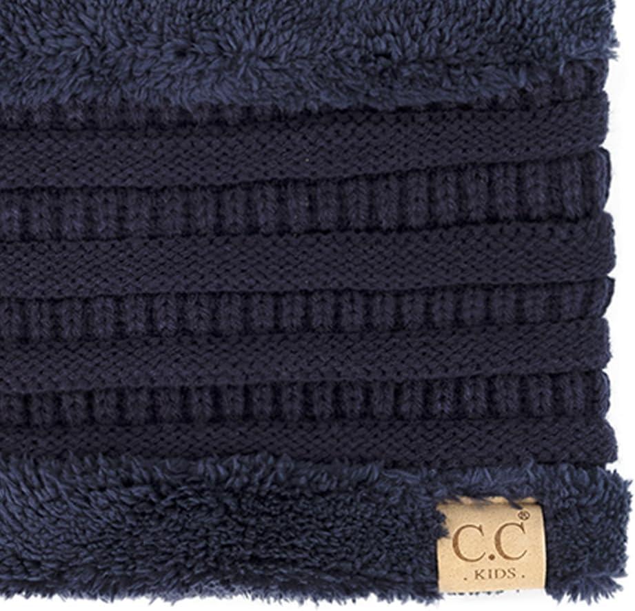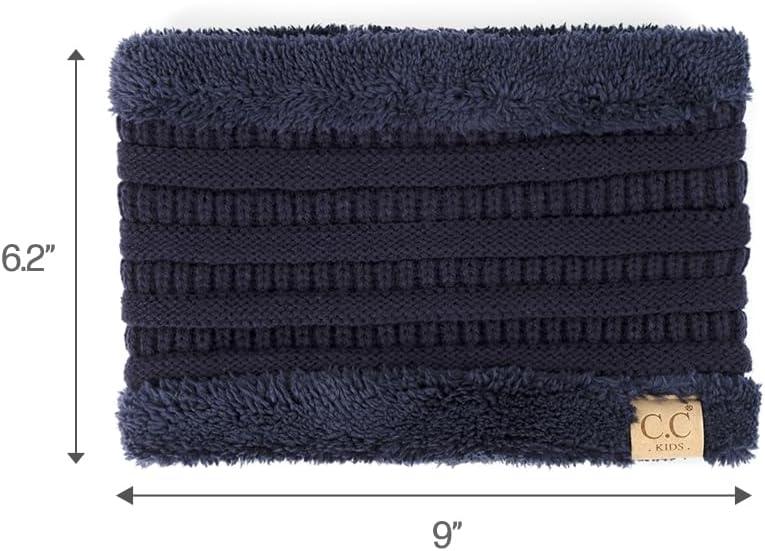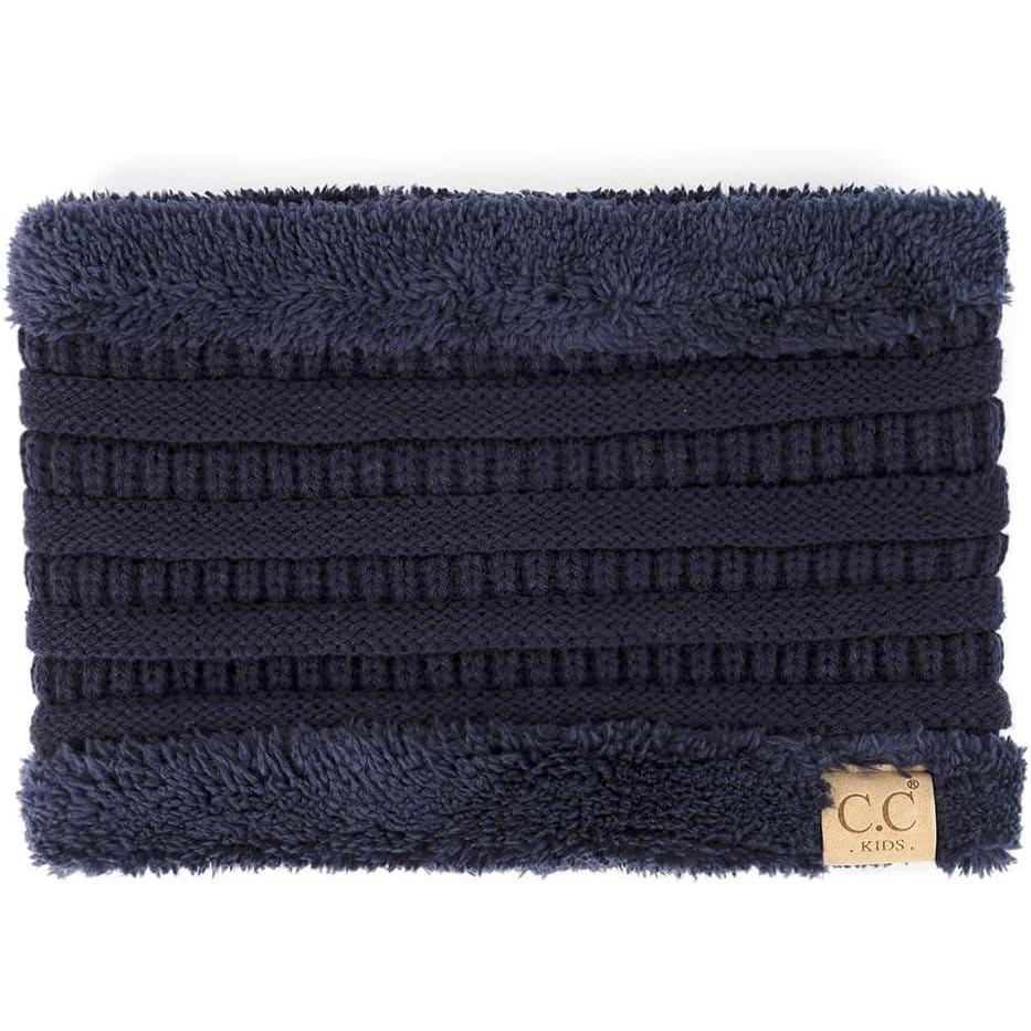 C.C Kids Ribbed Neck Warmer For Boys Girls - Comfortable Soft Warm Children Youth Knit Neck Gaiter with Fuzzy Lining(Navy)