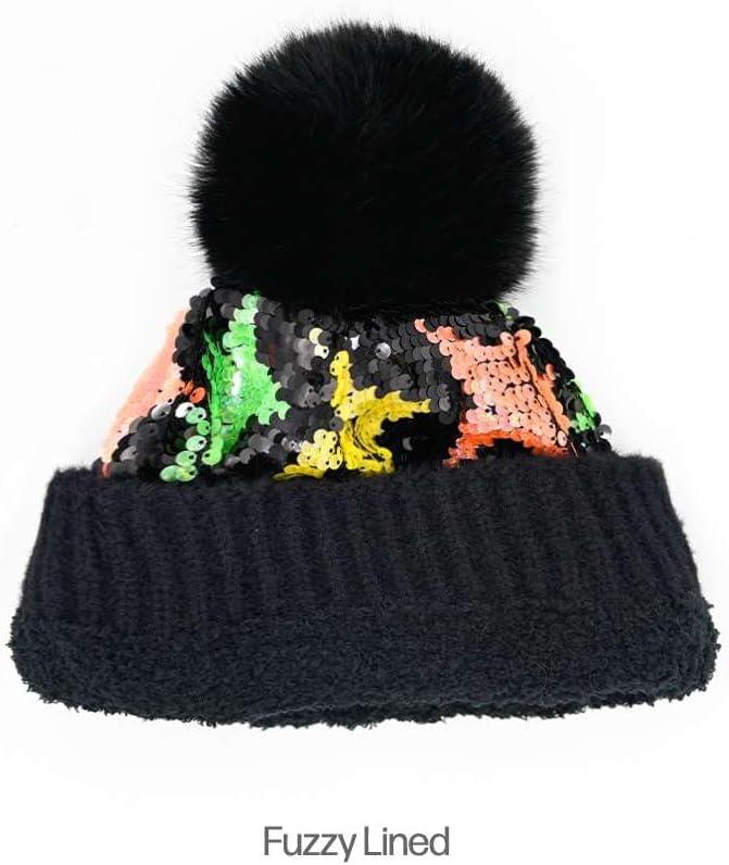 C.C Kids Sequin Fur Pom Beanie for Boys Girls – Comfortable Soft Warm Children Youth Knit Skully Hat with Faux Fur Pom(Multi Star 3)