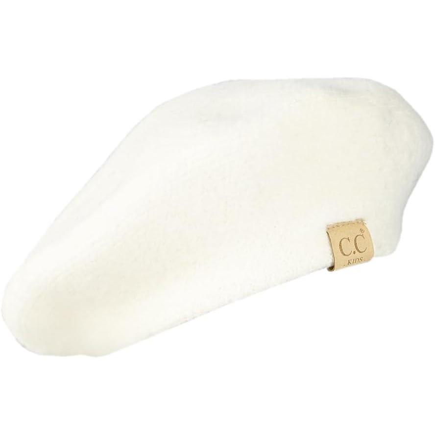 C.C Kids Soft Knit Beret for Girls - Confortable Soft Children's Beret with Adjustable String(Ivory)