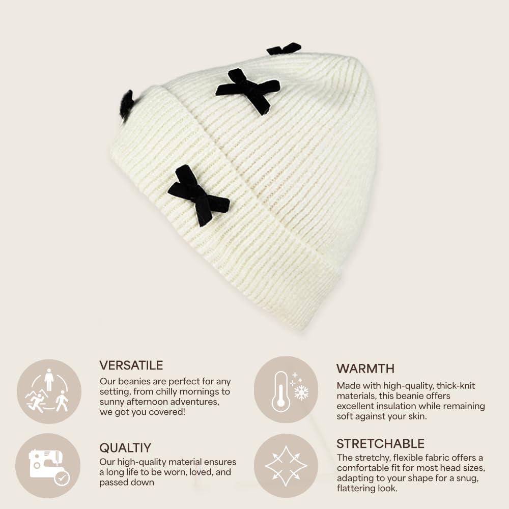 Be the first to review “C.C Knit Mini Velvet Bow Cuff Beanie for Women(Ivory/Black)”