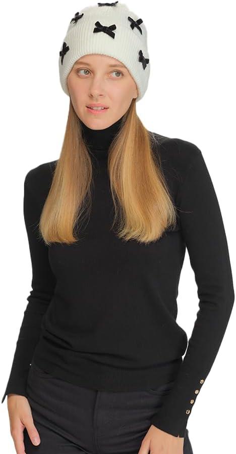 imageCC Knit Mini Velvet Bow Cuff Beanie for WomenIvoryBlack
