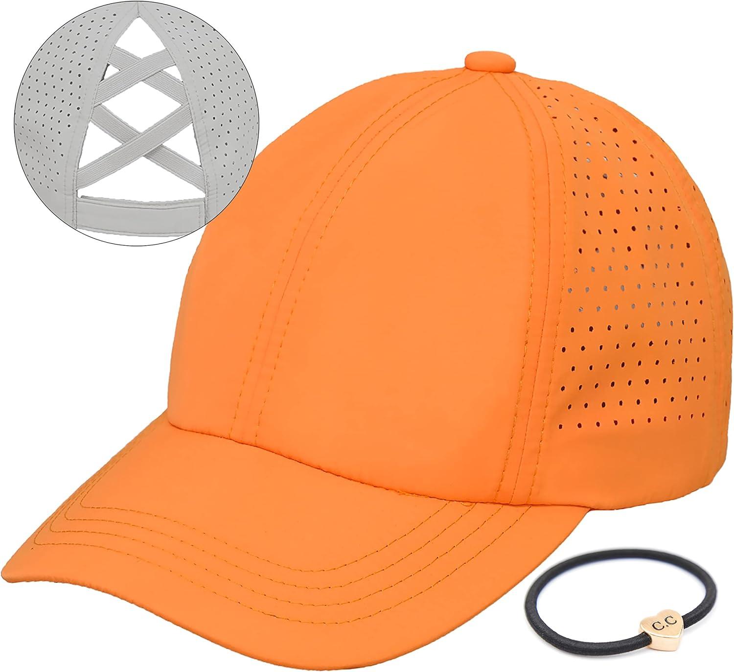 C.C Laser Cut Criss-Cross Elastic Band Unisex Baseball Cap (BAB-8036)(Orange)