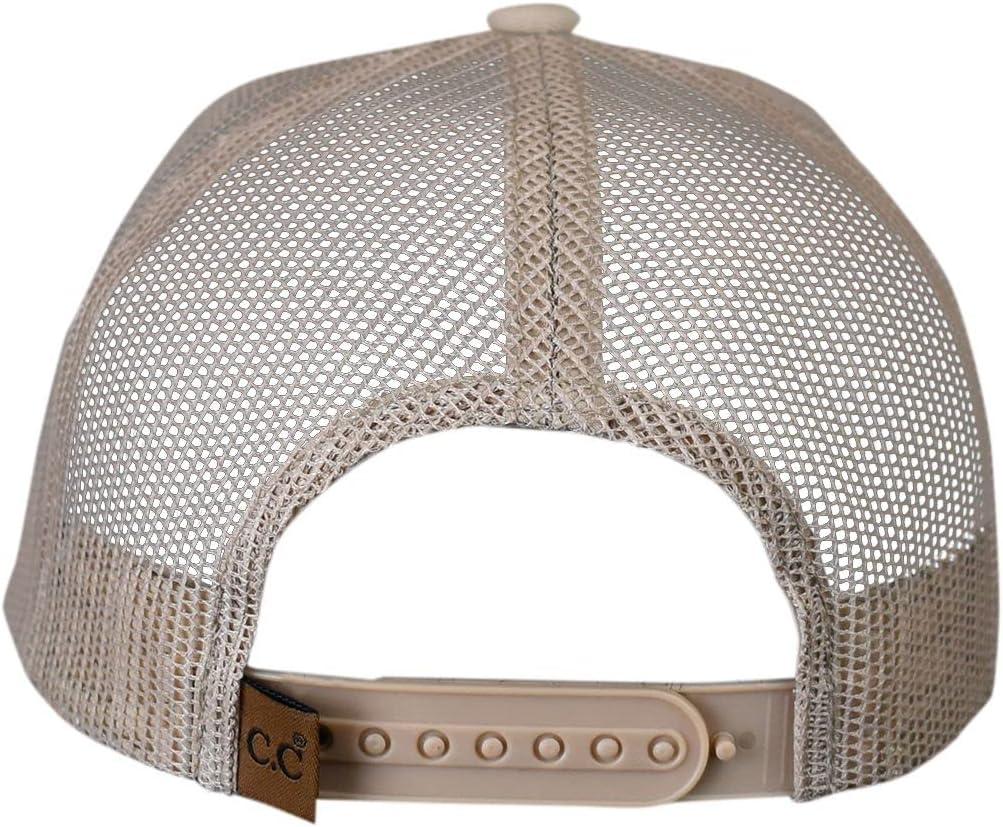 imageCC Mens Embroidered Patch Trucker Mesh Back Adjustable Snapback Baseball CapBirdie  Tan