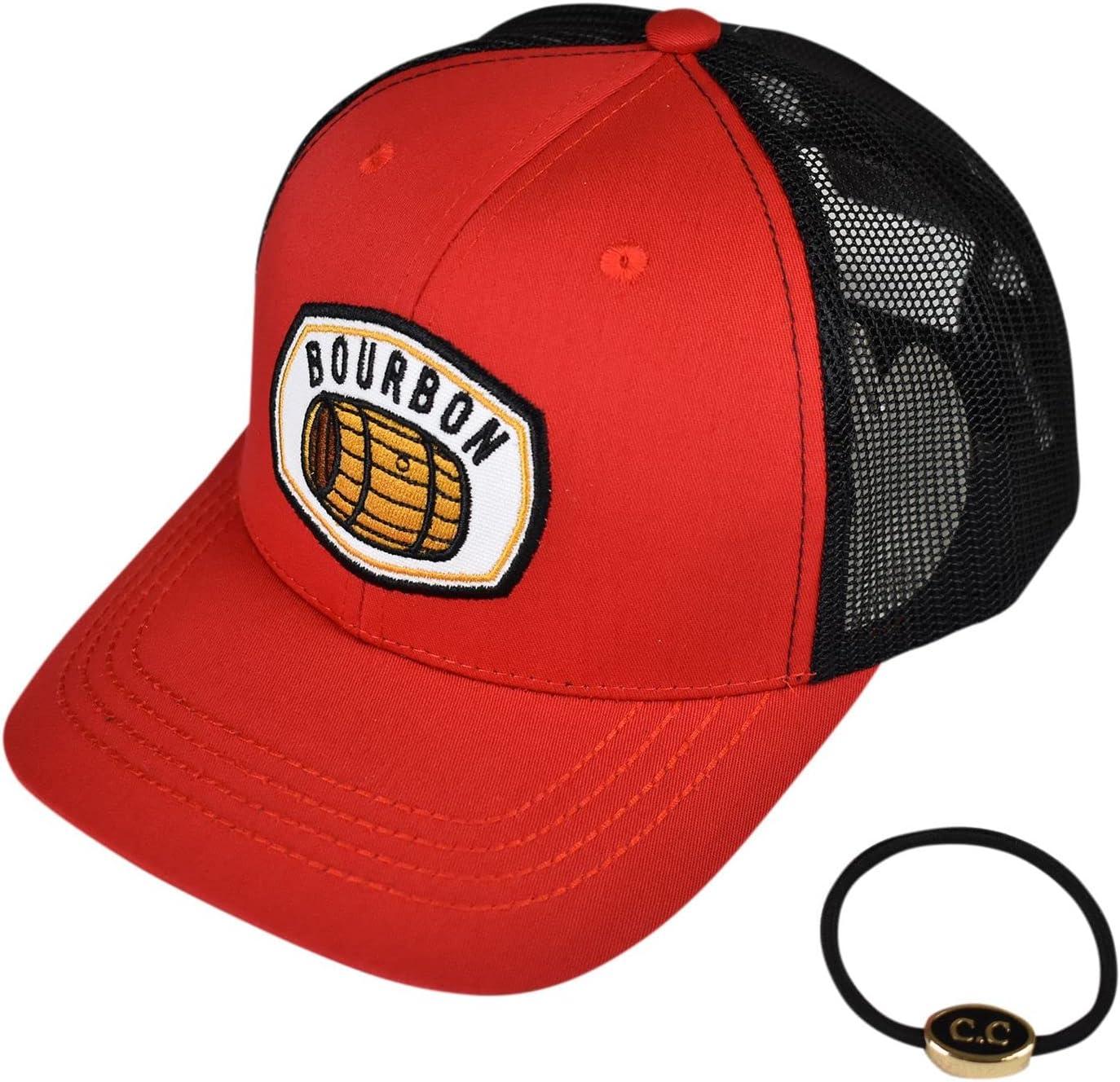 imageCC Mens Embroidered Patch Trucker Mesh Back Adjustable Snapback Baseball CapBourbon  Black
