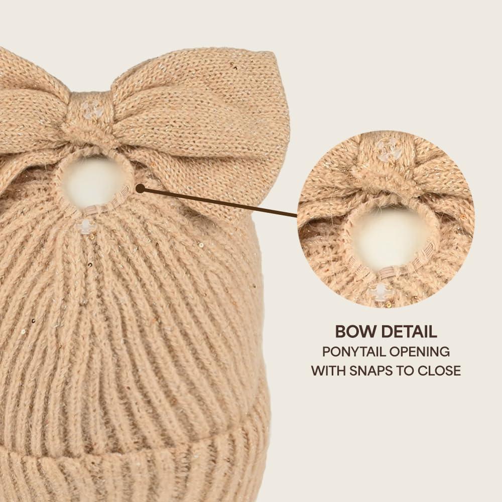 imageCC Messy Bun SnapOn Bow Beanie with Sequins for WomenCamel