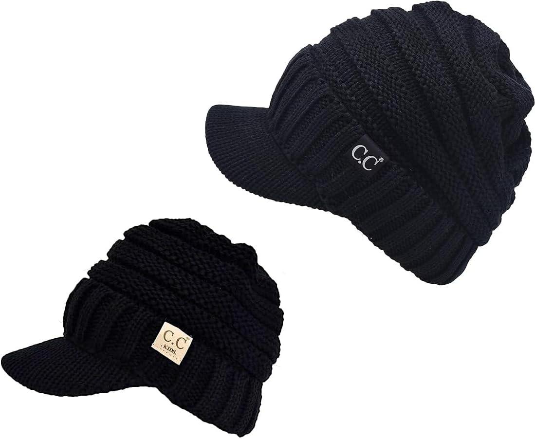 C.C Mommy and Me Beanies Women Kids Toddler Infant Mom and Baby Matching Christmas Outfits Winter Visor Brim(Adult / Toddler - Black)