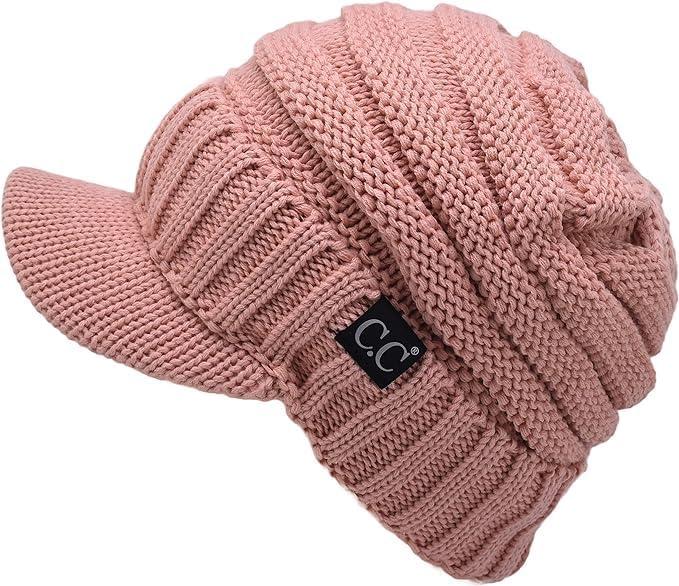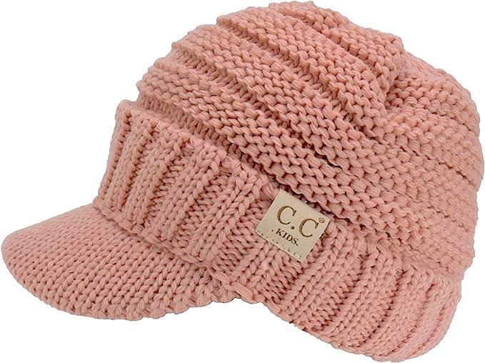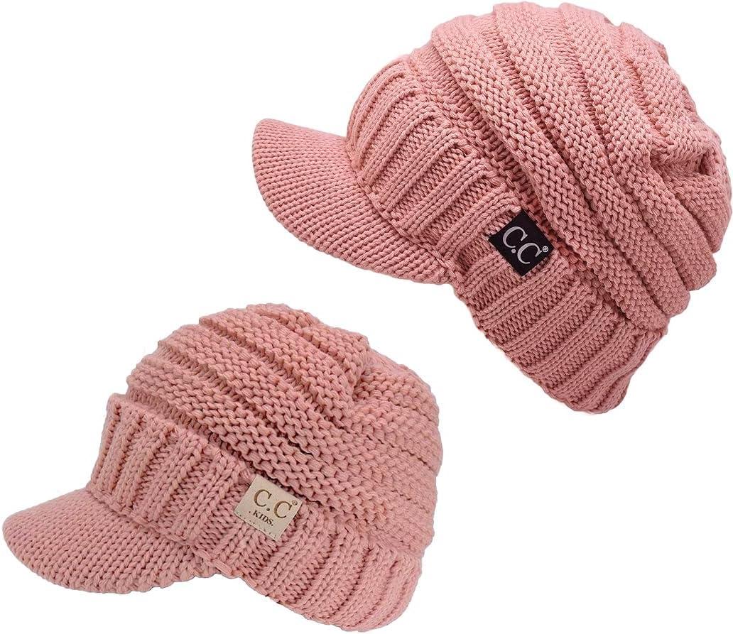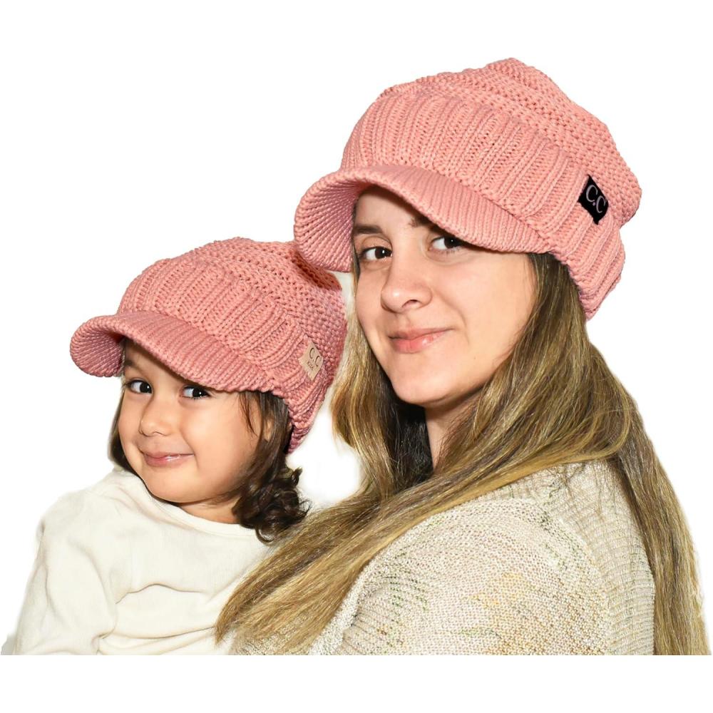 C.C Mommy and Me Beanies Women Kids Toddler Infant Mom and Baby Matching Christmas Outfits Winter Visor Brim(Adult / Toddler - Indi Pink)
