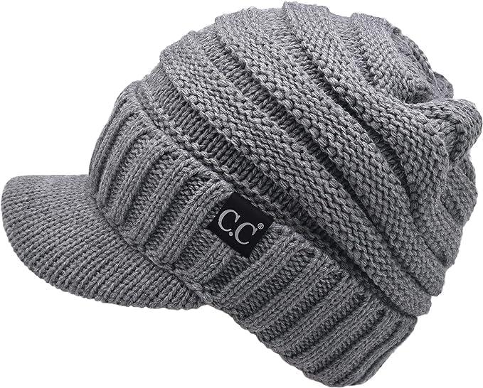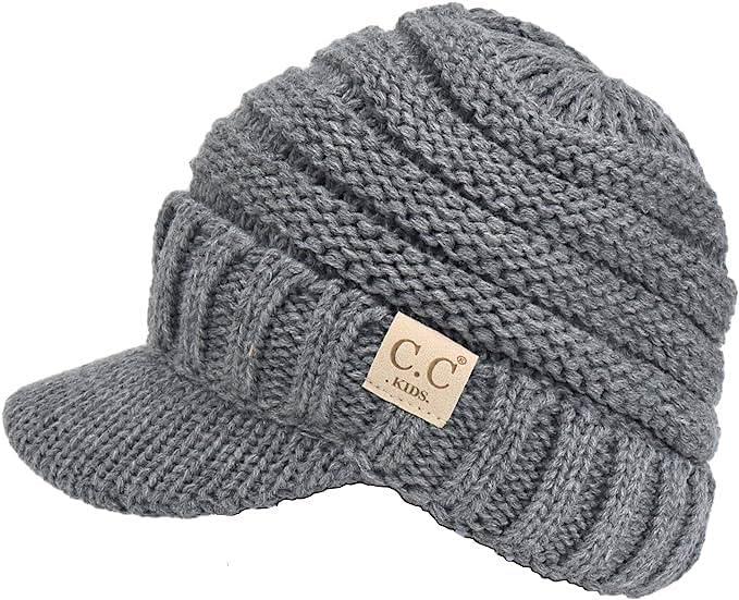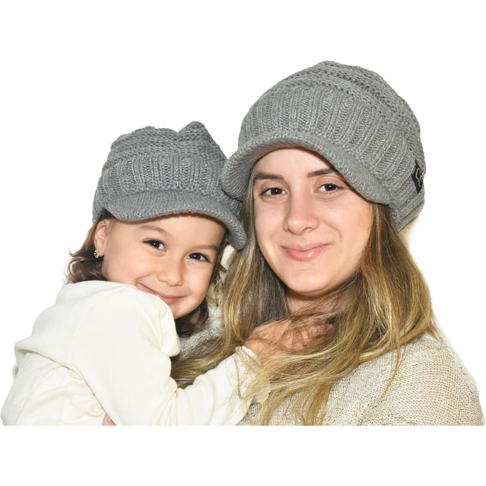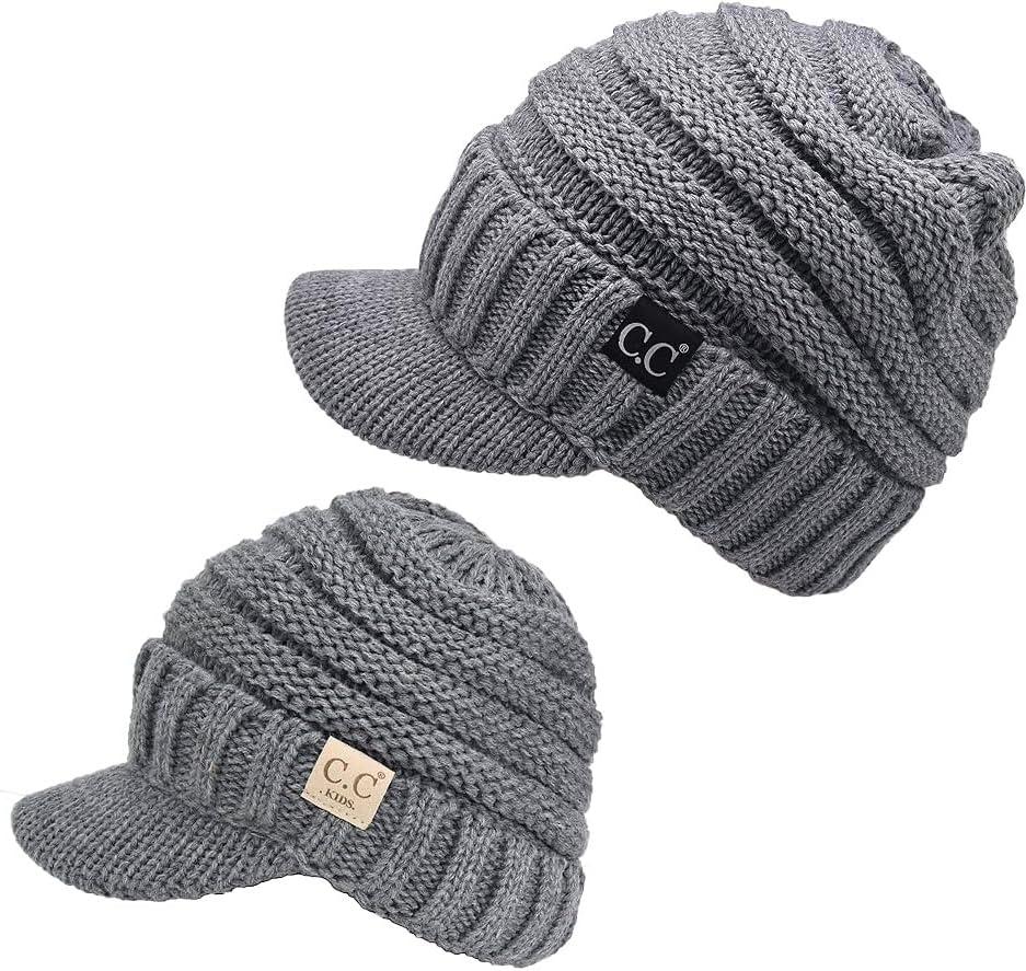 C.C Mommy and Me Beanies Women Kids Toddler Infant Mom and Baby Matching Christmas Outfits Winter Visor Brim(Adult / Toddler - Light Melange Grey)