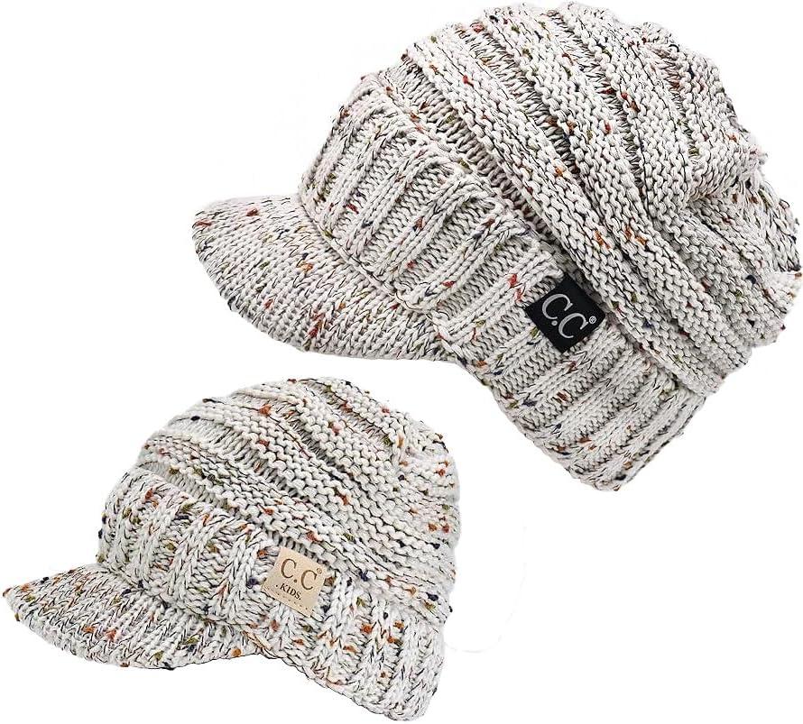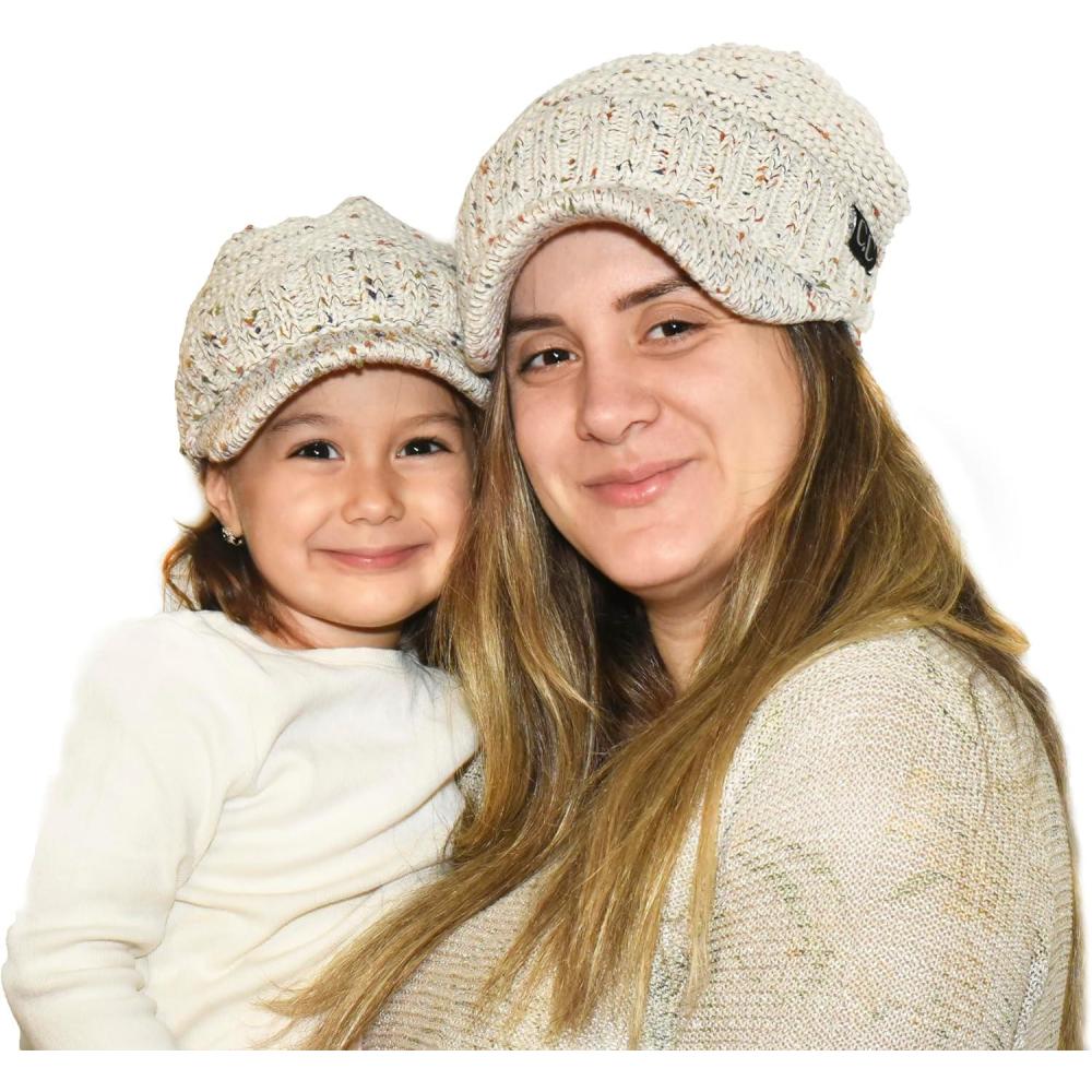 C.C Mommy and Me Beanies Women Kids Toddler Infant Mom and Baby Matching Christmas Outfits Winter Visor Brim(Adult / Toddler - Oatmeal)