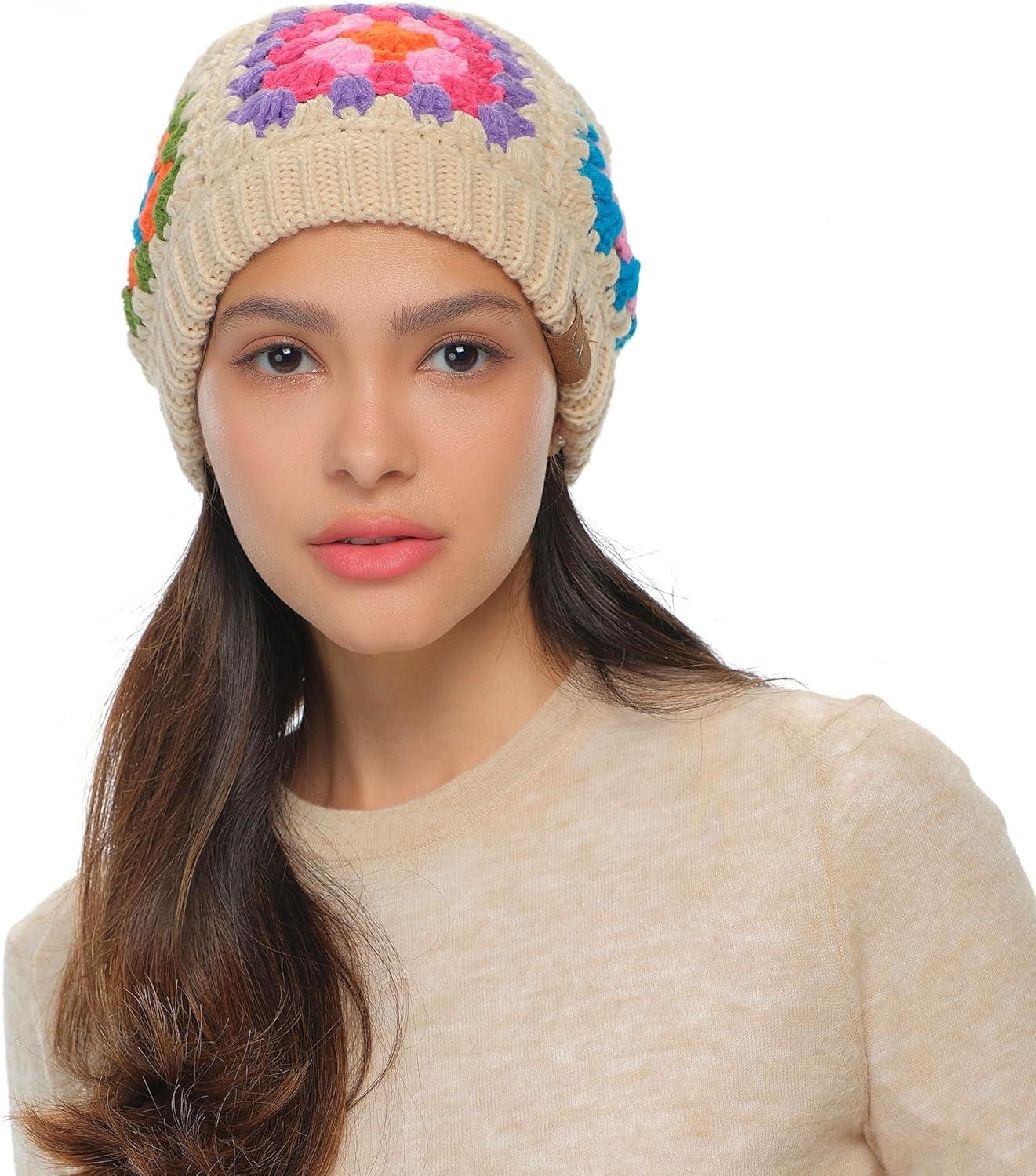 C.C Multi Color Crochet Beanie & Headwrap for Women Unisex – Stretchable Soft Warm Knit Winter Skully Hat(Beige)