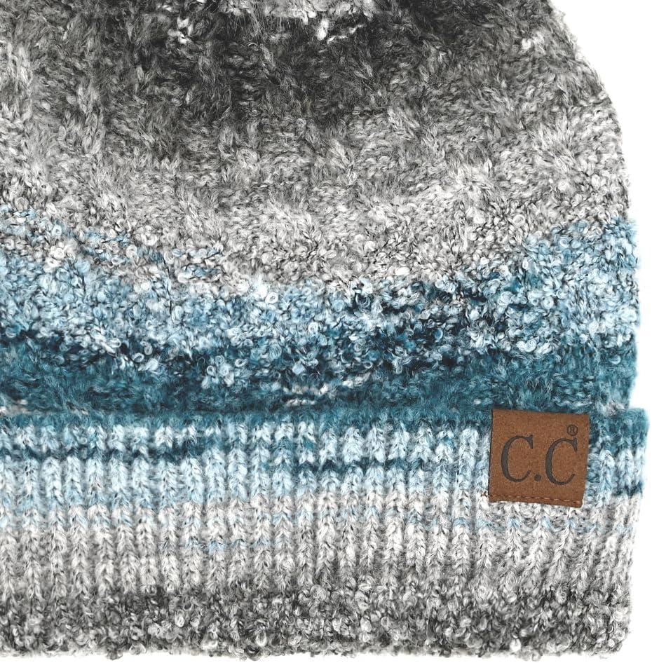 C.C Multi Color Space Dye Wool Stretchable Soft Warm Pom Beanie with Faux Fur Pom Knit Winter Skully Hat.(Denim Combo)