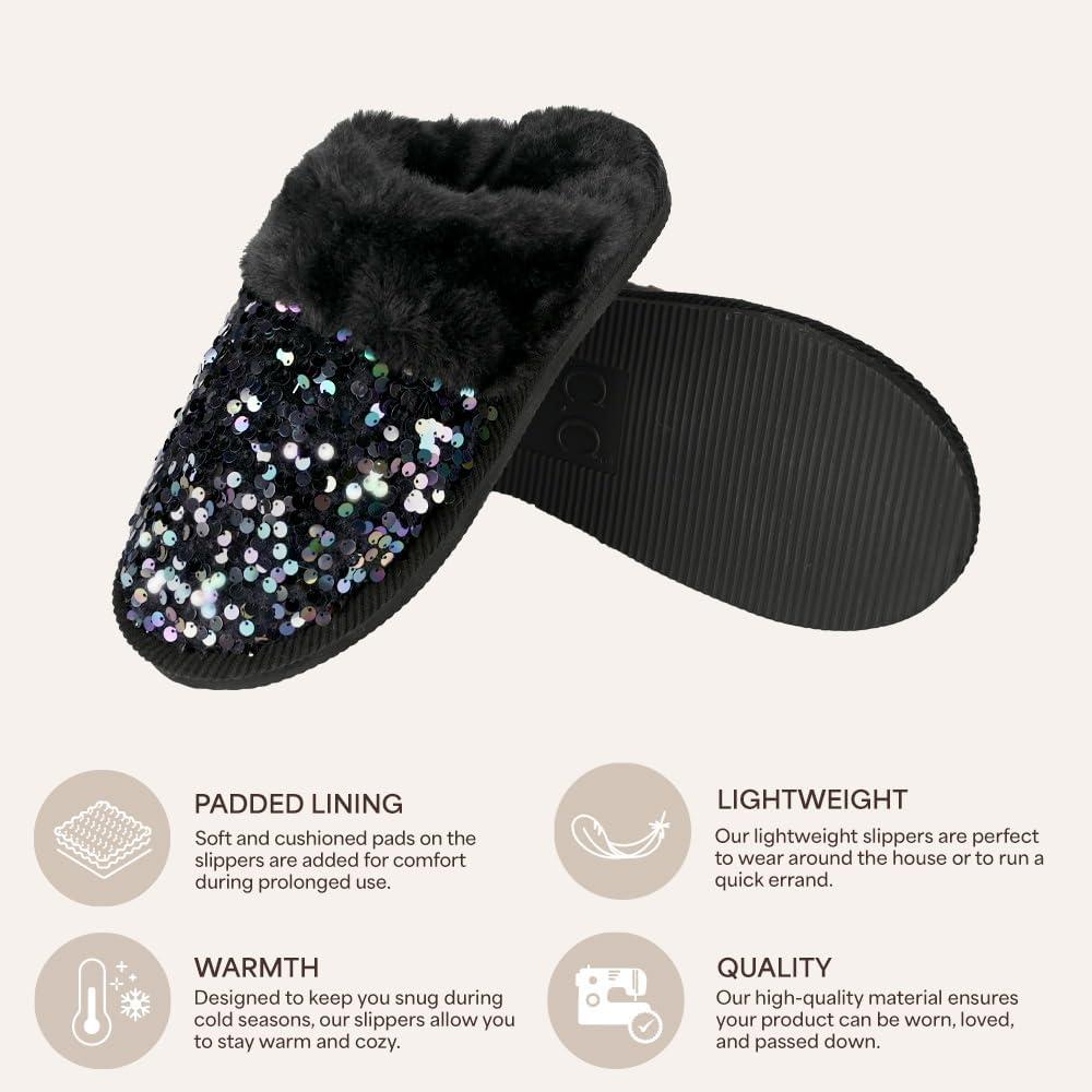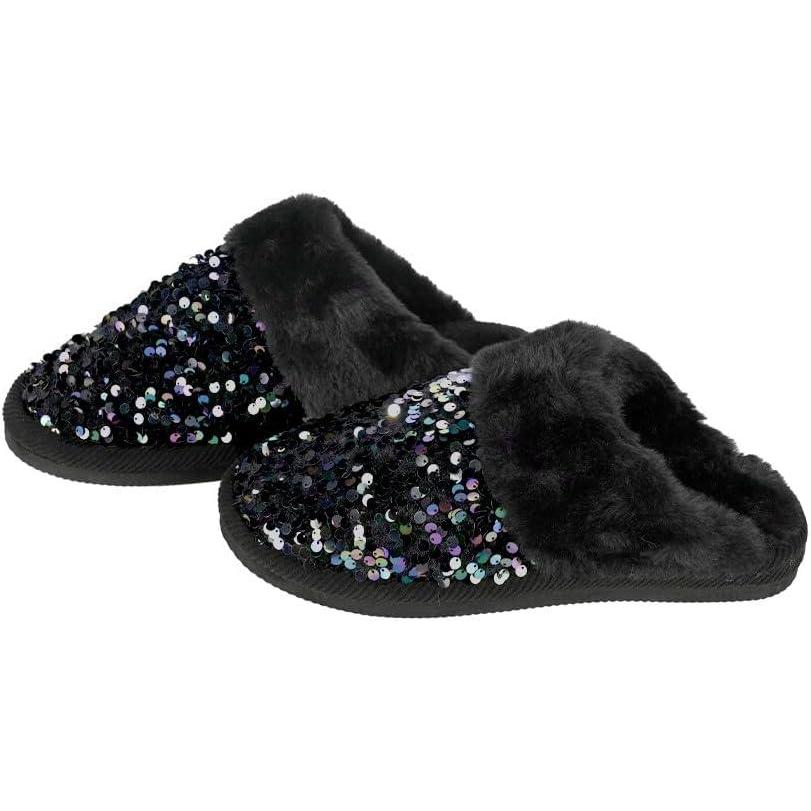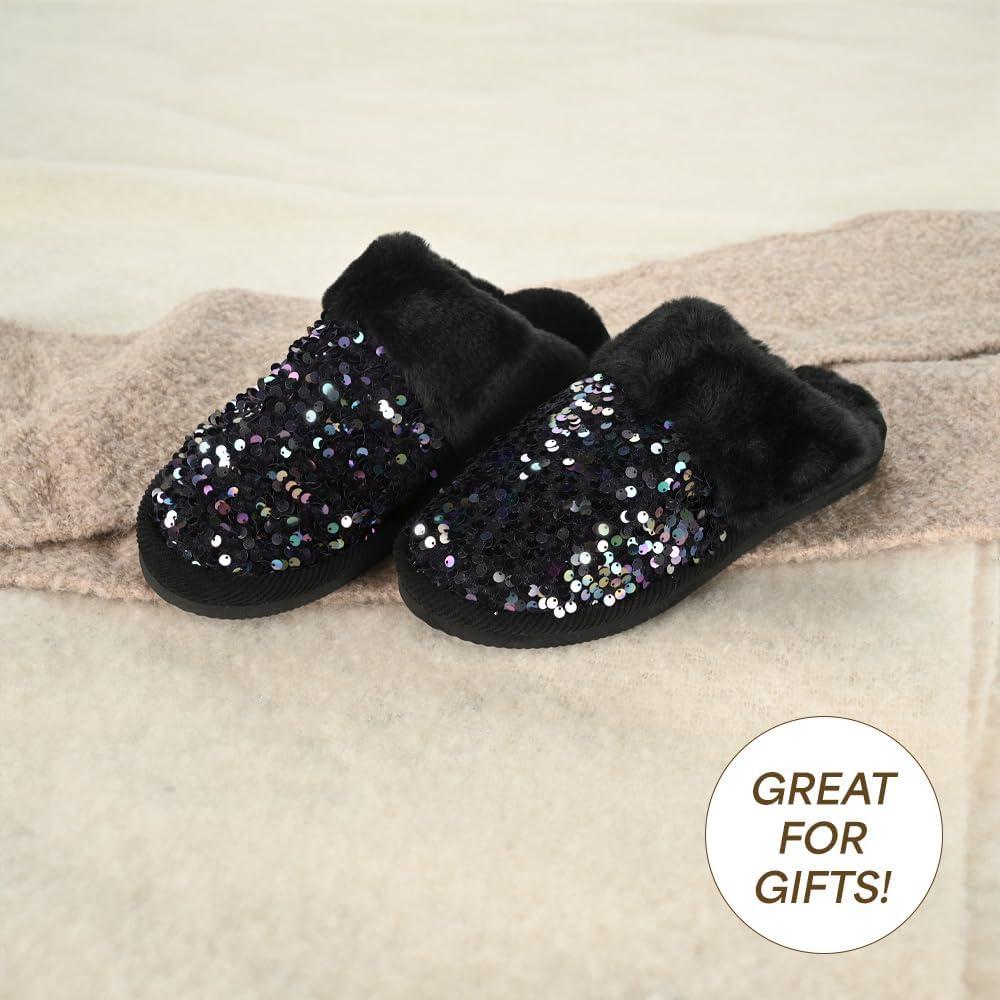 imageCC MultiOption Colorful SlipOn Slippers With Faux Fur Lining IndoorOutdoor House For WomenSequin  GoldBlack