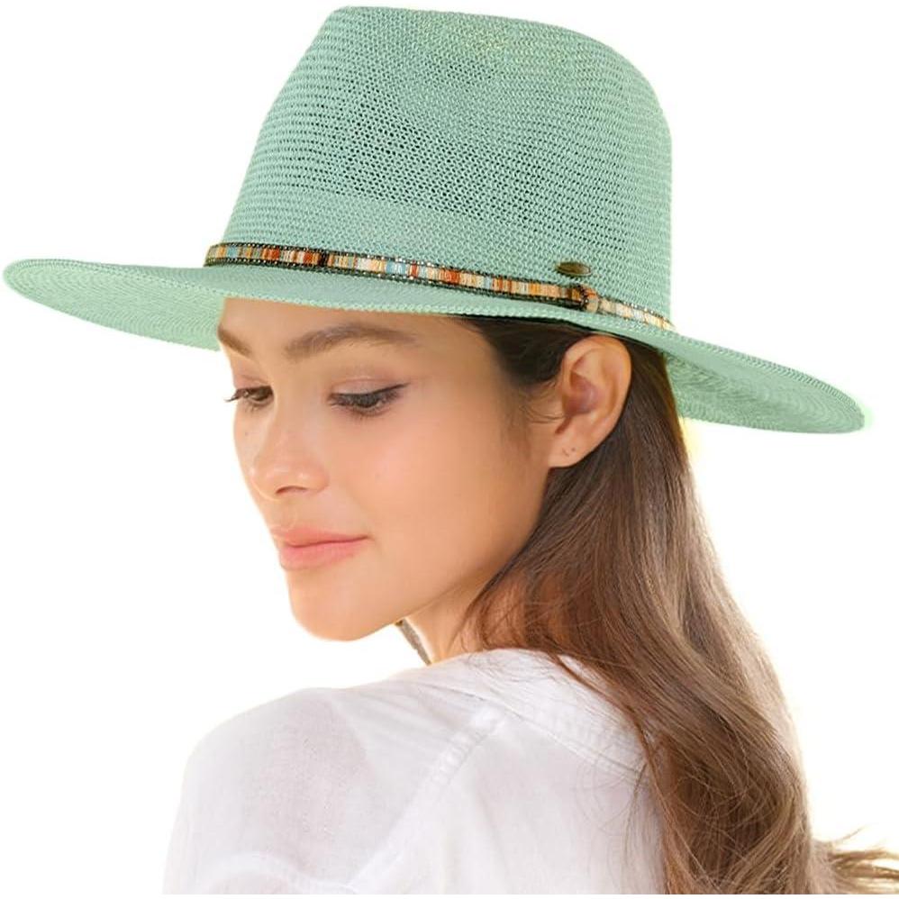 C.C Panama Hat W/Rhinestone Trim Band(Mint)