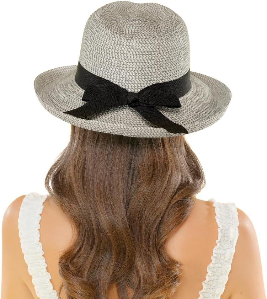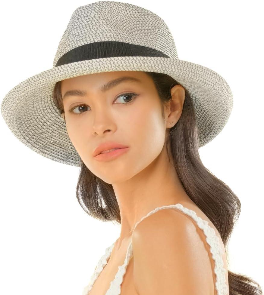 C.C® Panama Sun Hat – Rolled Edge Fedora Style with Trim Band & UPF 50+ UV Protection(Grey Multi)