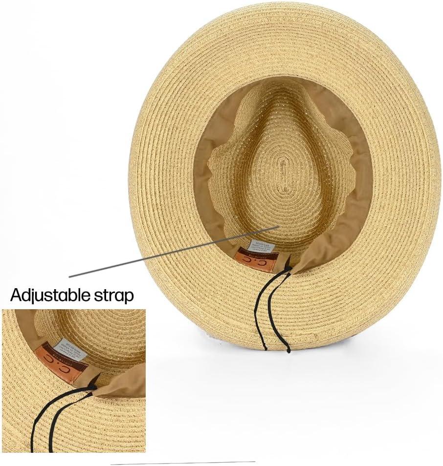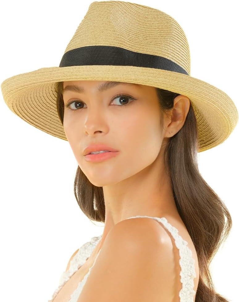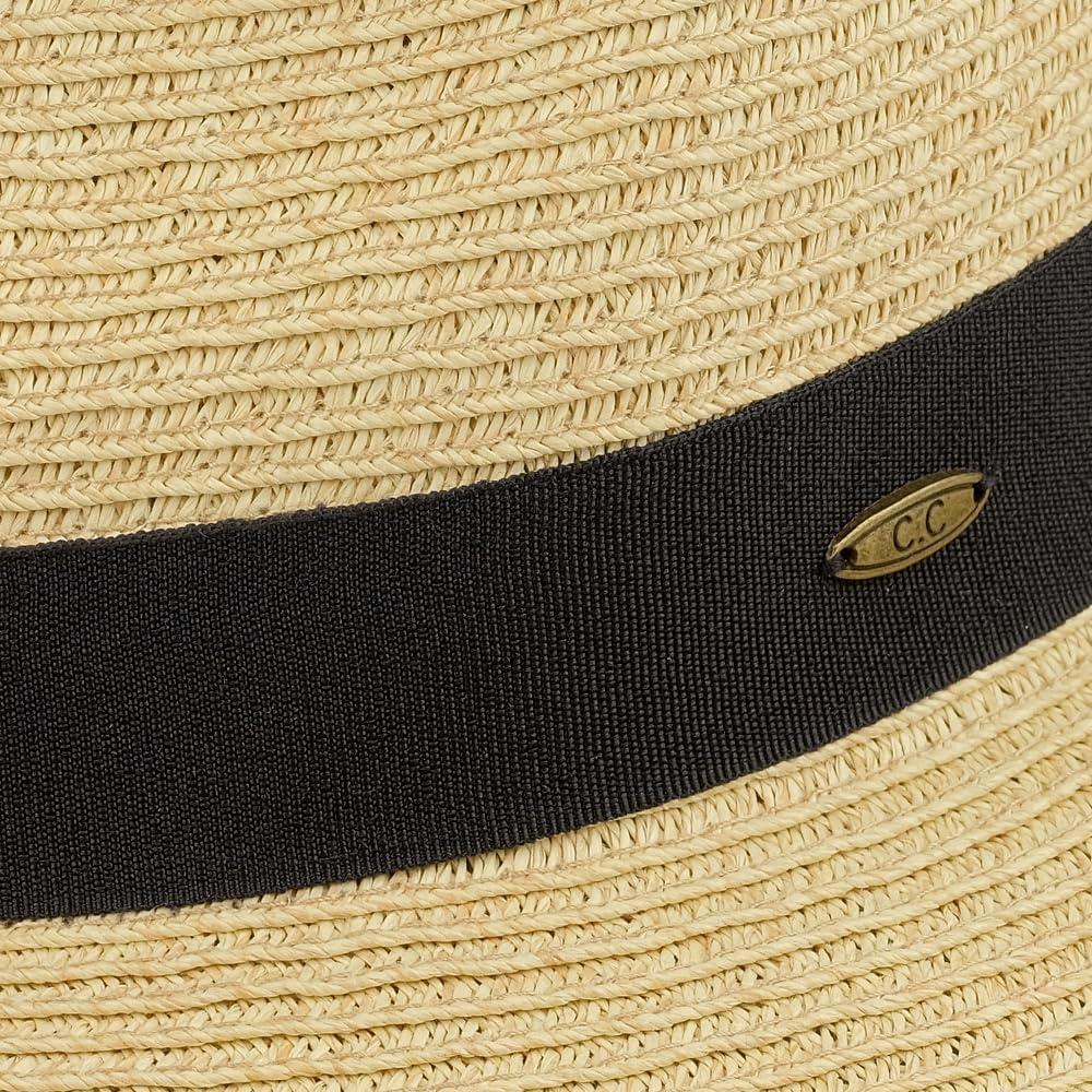 C.C® Panama Sun Hat – Rolled Edge Fedora Style with Trim Band & UPF 50+ UV Protection(Natural)