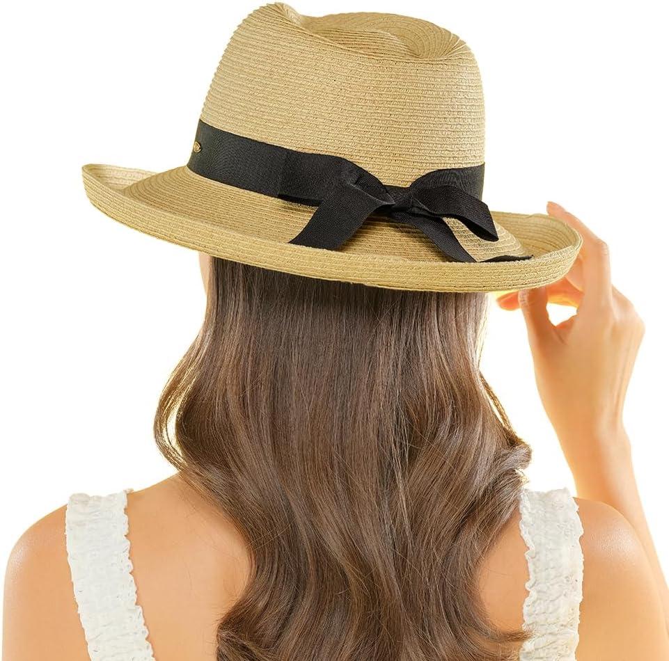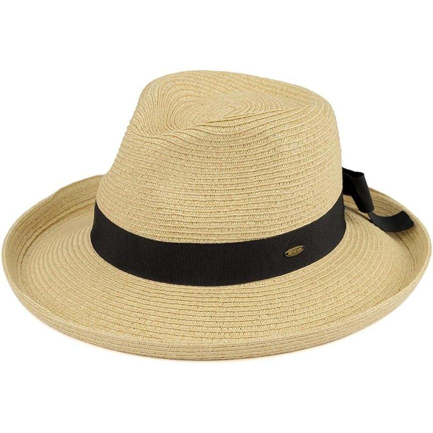imageCC Panama Sun Hat  Rolled Edge Fedora Style with Trim Band ampamp UPF 50 UV ProtectionNatural