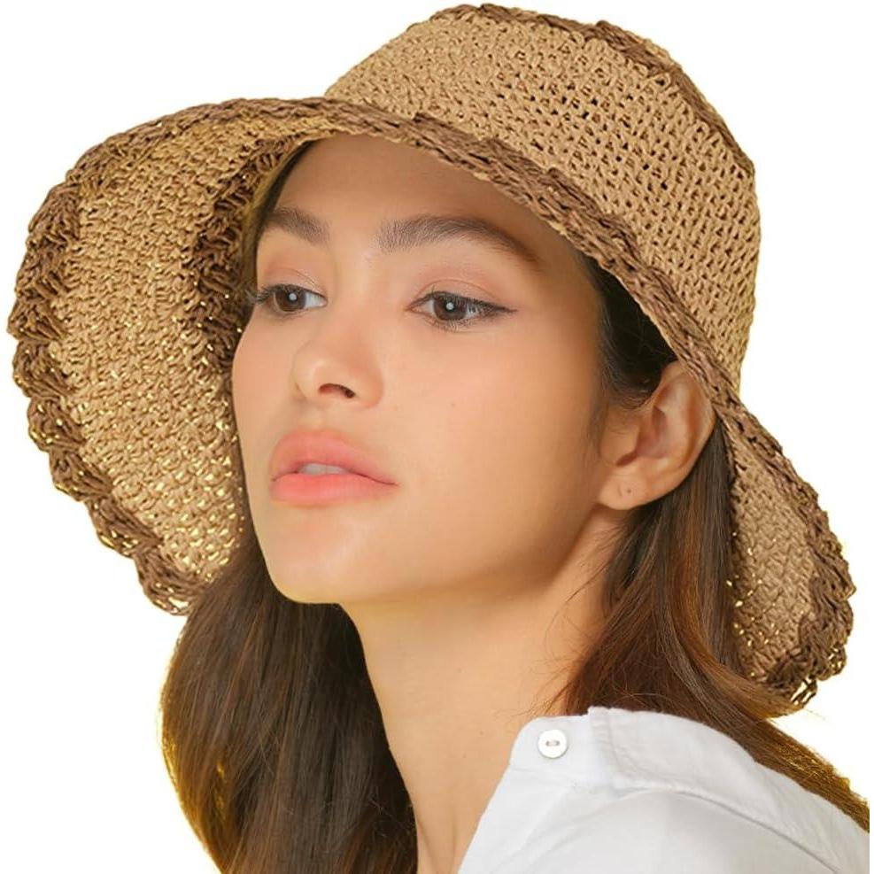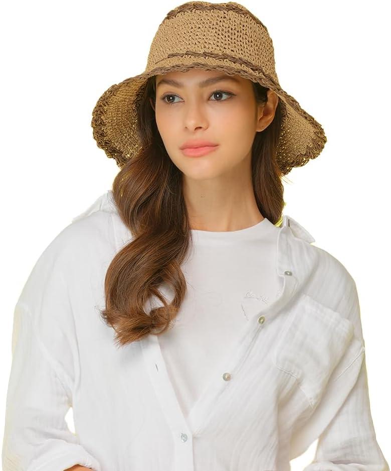 imageCC Paper Straw HandCrochet Bucket HatScallop Edge  Beige