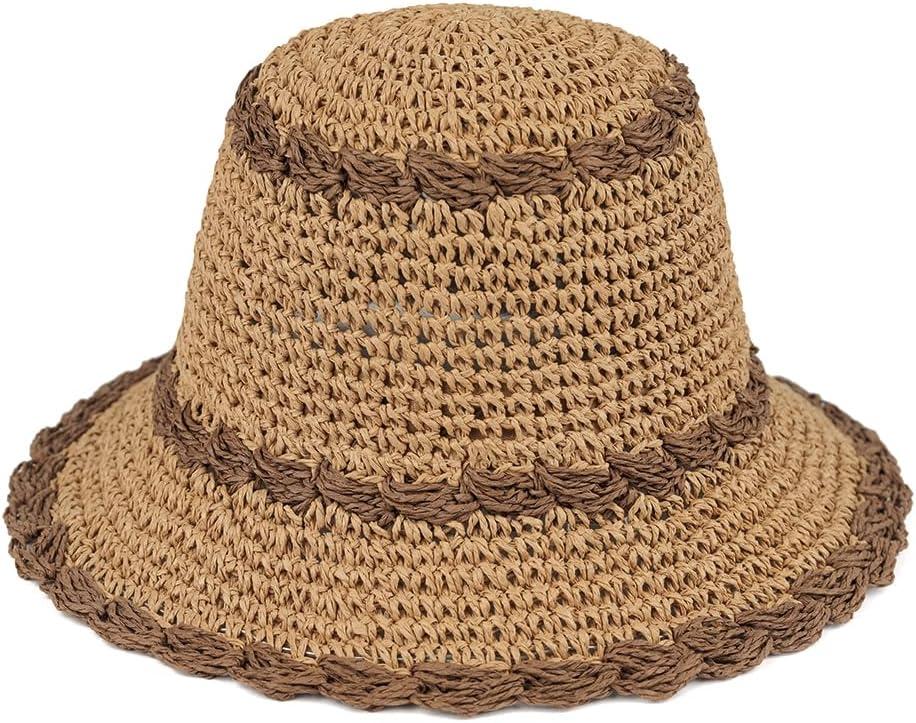 C.C Paper Straw Hand-Crochet Bucket Hat(Scallop Edge – Dk. Natural)