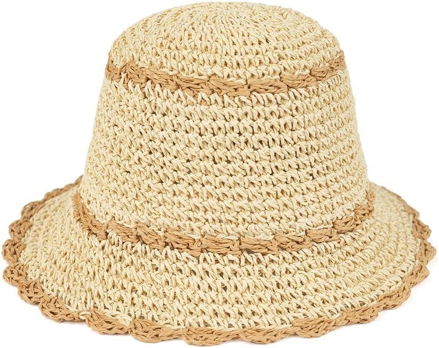 imageCC Paper Straw HandCrochet Bucket HatScallop Edge  Natural