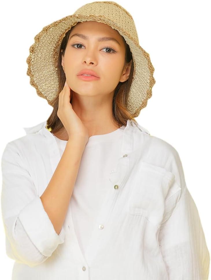 C.C Paper Straw Hand-Crochet Bucket Hat(Scallop Edge – Natural)