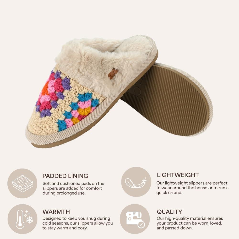 imageCC Pattern Knitted SlipOn Slippers With Faux Fur Lining IndoorOutdoor House For WomenCrochet Beige