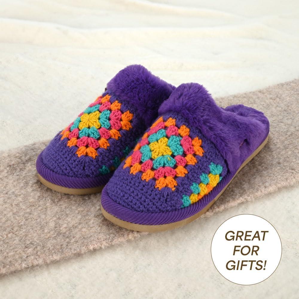 imageCC Pattern Knitted SlipOn Slippers With Faux Fur Lining IndoorOutdoor House For WomenCrochet Purple