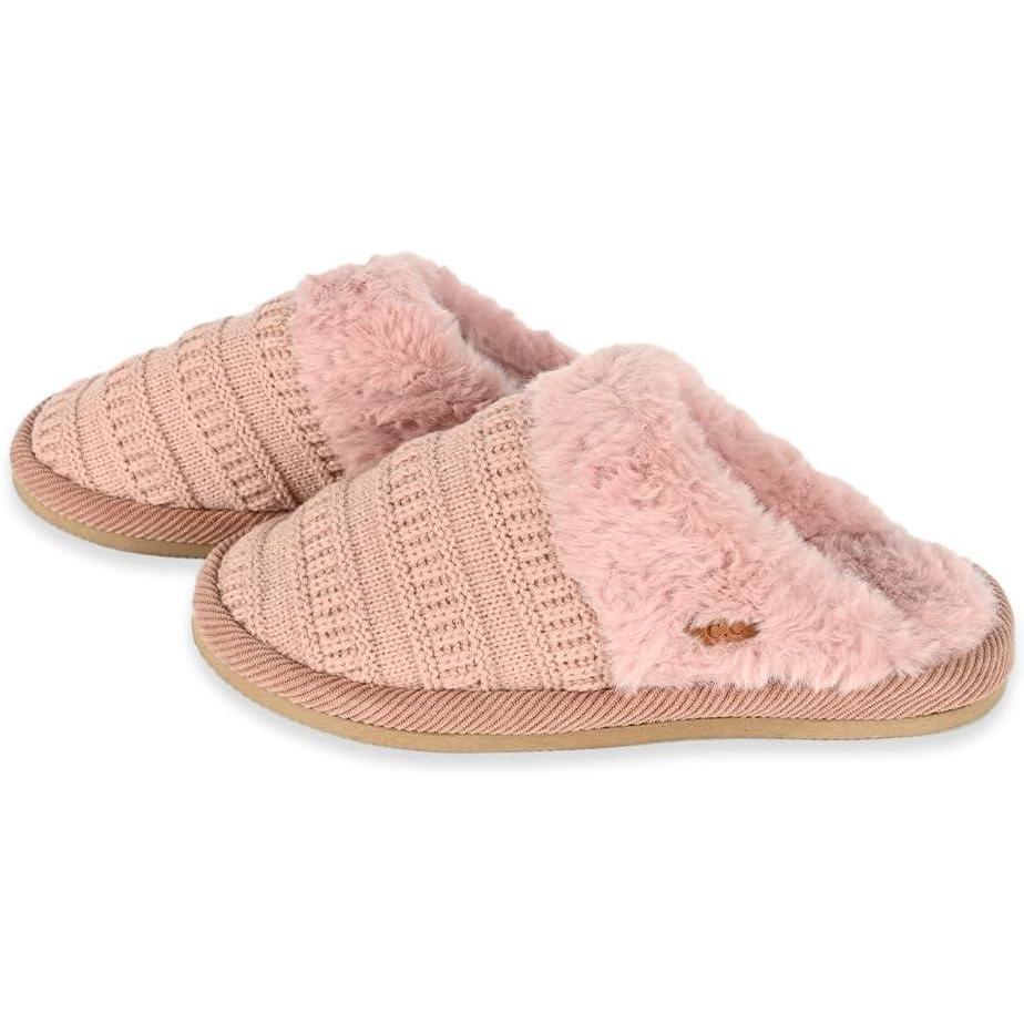 C.C Pattern Knitted Slip-On Slippers With Faux Fur Lining Indoor-Outdoor House For Women(Rib Rose)